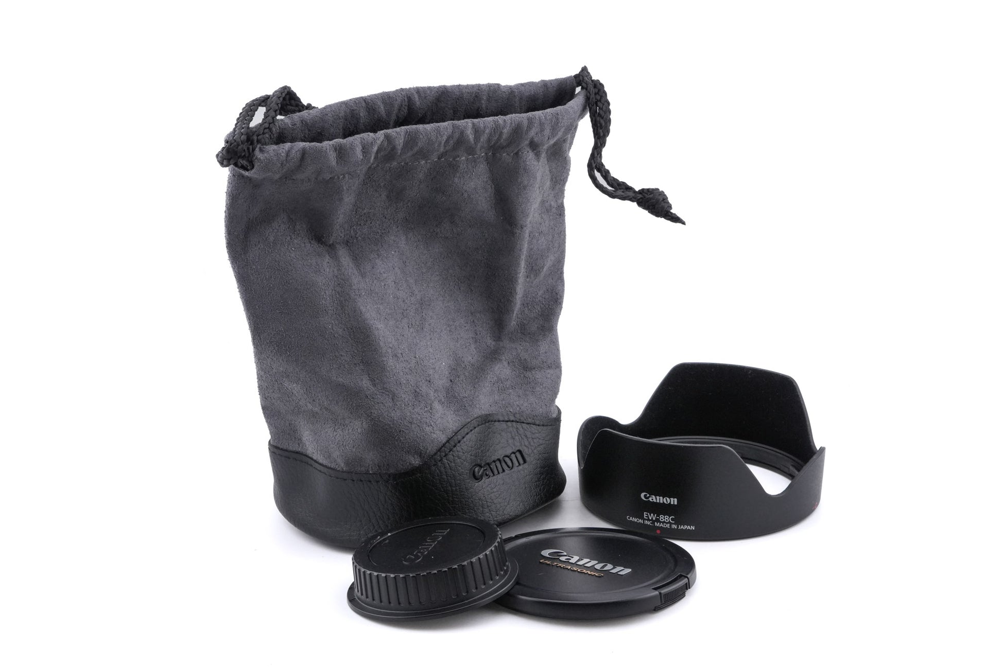 Autofocus normal zoom made for EF-mount SLR cameras by Canon. It is part of their L series of professional lenses and has a weather-sealing gasket. It also uses Canon's ultrasonic motor (USM) for autofocus. Metal and plastic body available in black.