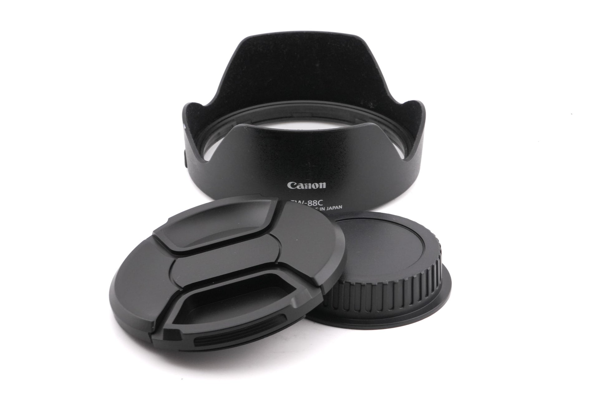 Autofocus normal zoom made for EF-mount SLR cameras by Canon. It is part of their L series of professional lenses and has a weather-sealing gasket. It also uses Canon's ultrasonic motor (USM) for autofocus. Metal and plastic body available in black.