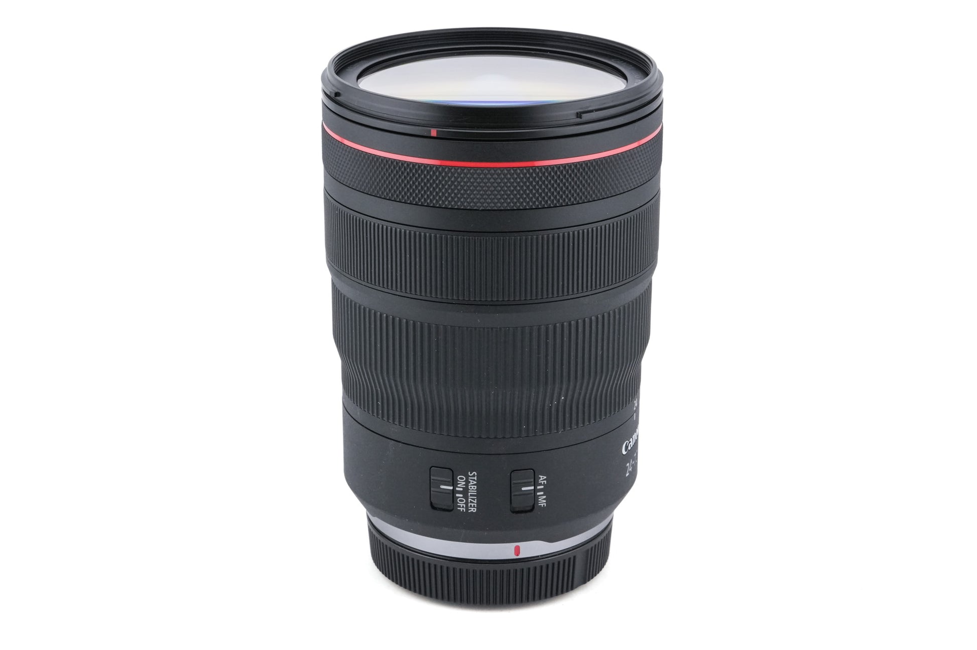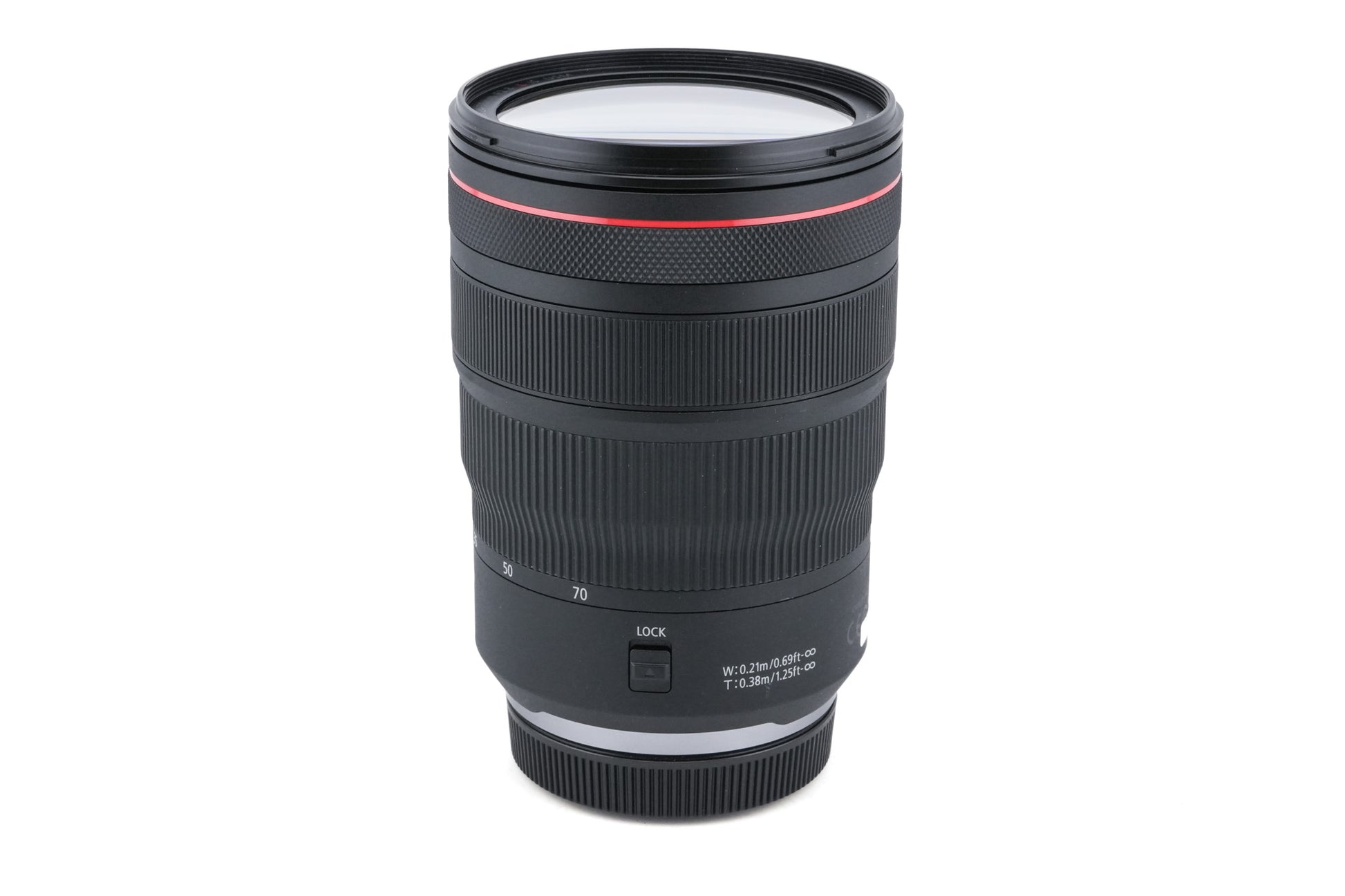 Autofocus zoom lens for RF-mount digital mirrorless cameras introduced by Canon in 2019. It is part of Canon's professional L-series of lenses. It has image stabilization and uses an ultrasonic motor for autofocus. It also has 3 UD extra low dispersion glass elements as well as 3 aspherical ones. Plastic & metal body available in black.