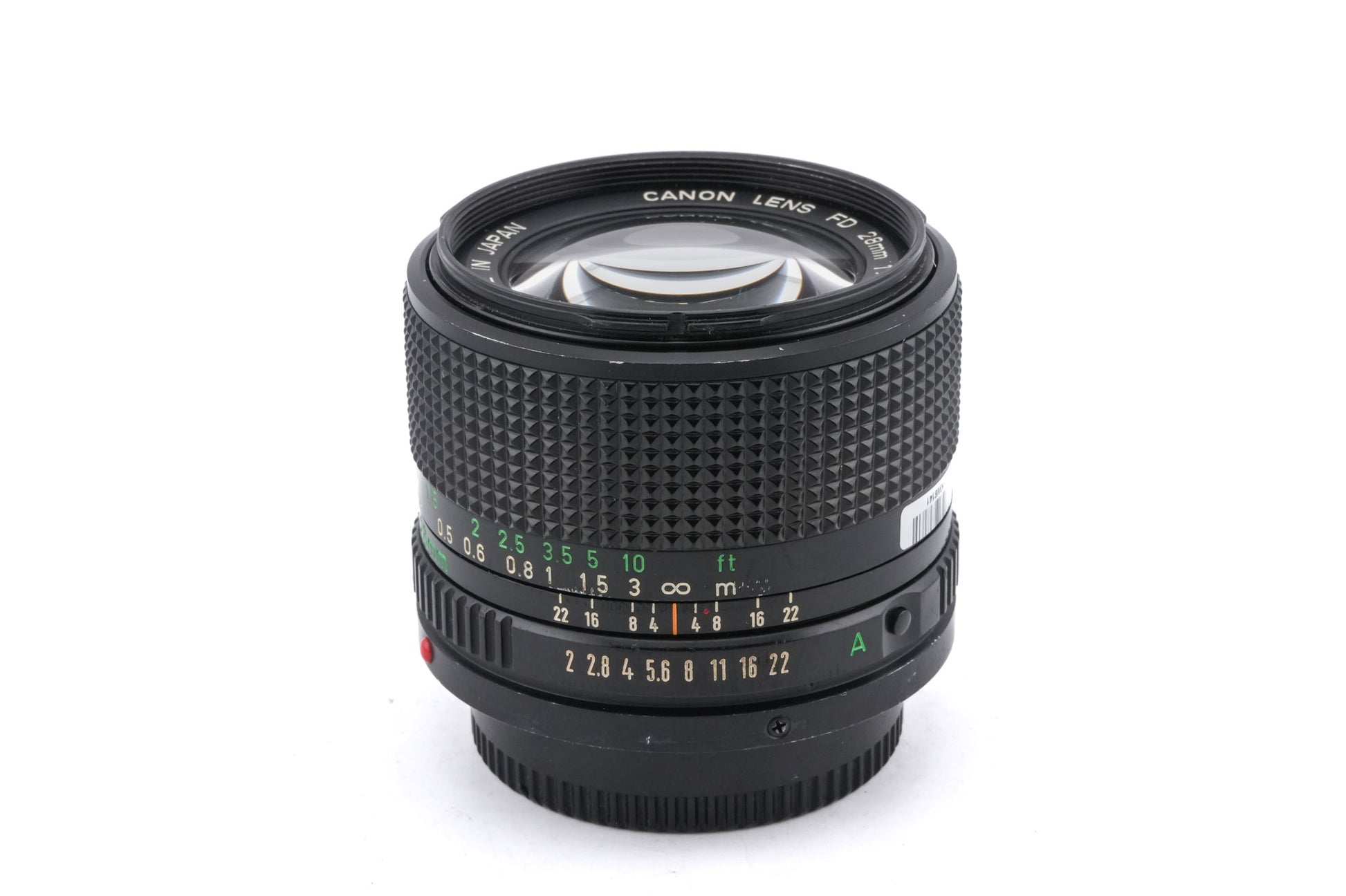 Manual focus wide-angle lens made for FD-mount 35mm SLR cameras introduced by Canon in 1975. It has in-between aperture stops. Plastic and metal body available in black.