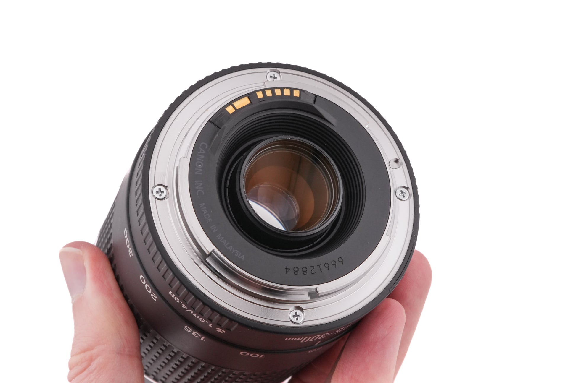 Autofocus telephoto zoom lens made for EF-mount SLRs by Canon. Plastic/metal body available in black.