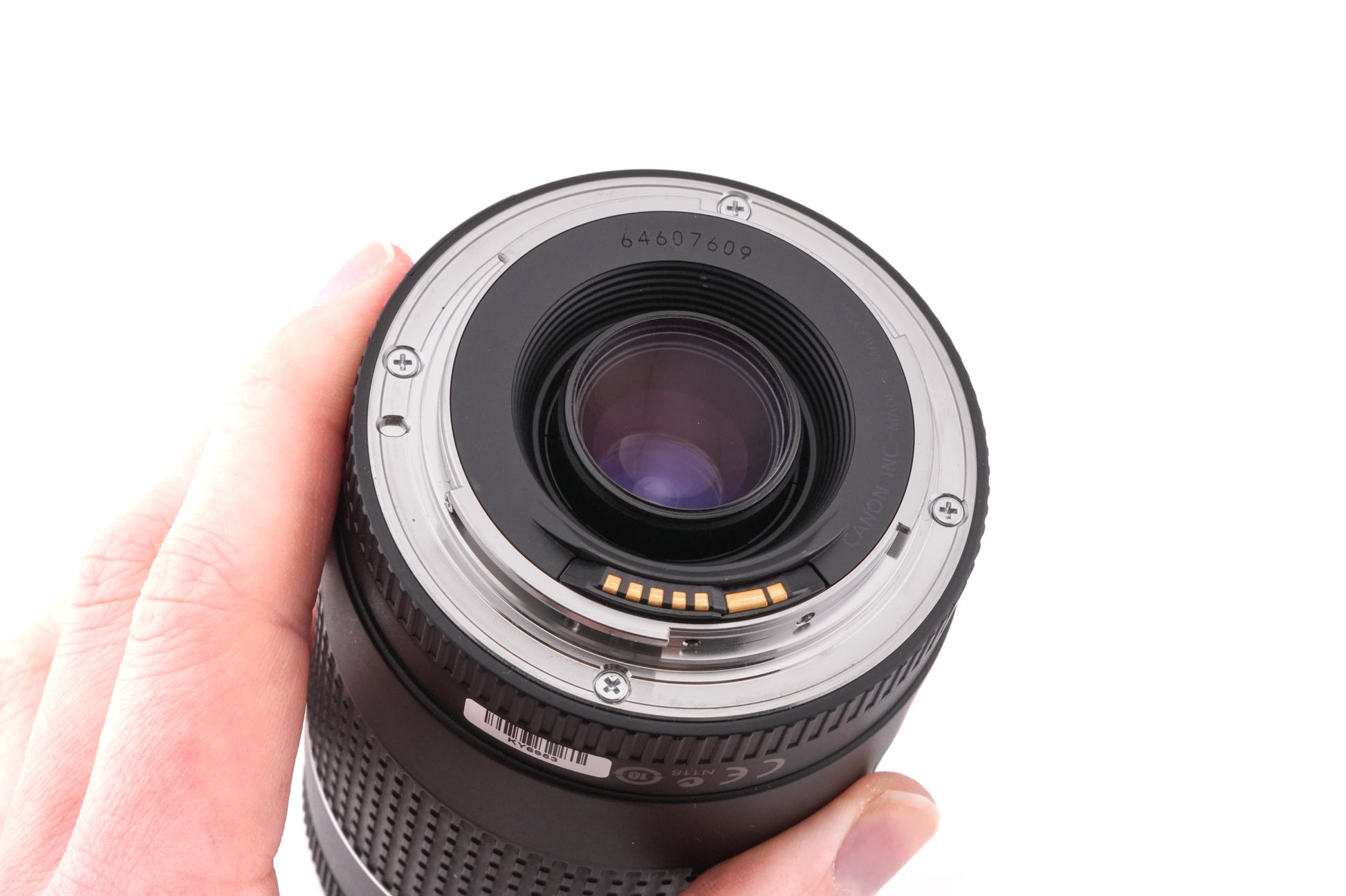 Autofocus telephoto zoom lens made for EF-mount SLRs by Canon. Plastic/metal body available in black.