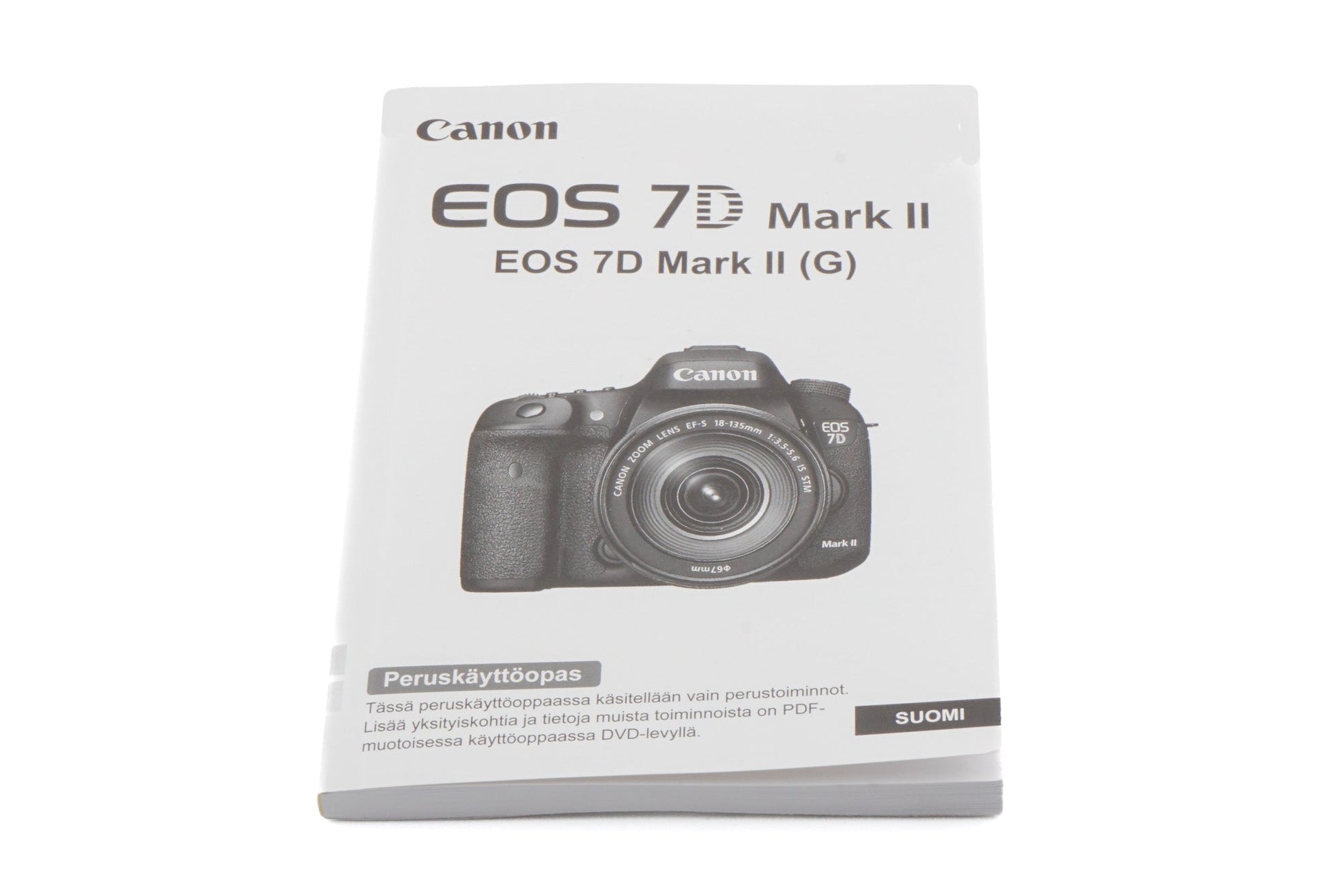 Instruction manual for Canon EOS 7D Mark II and its (G) variant cameras. Paper booklet.