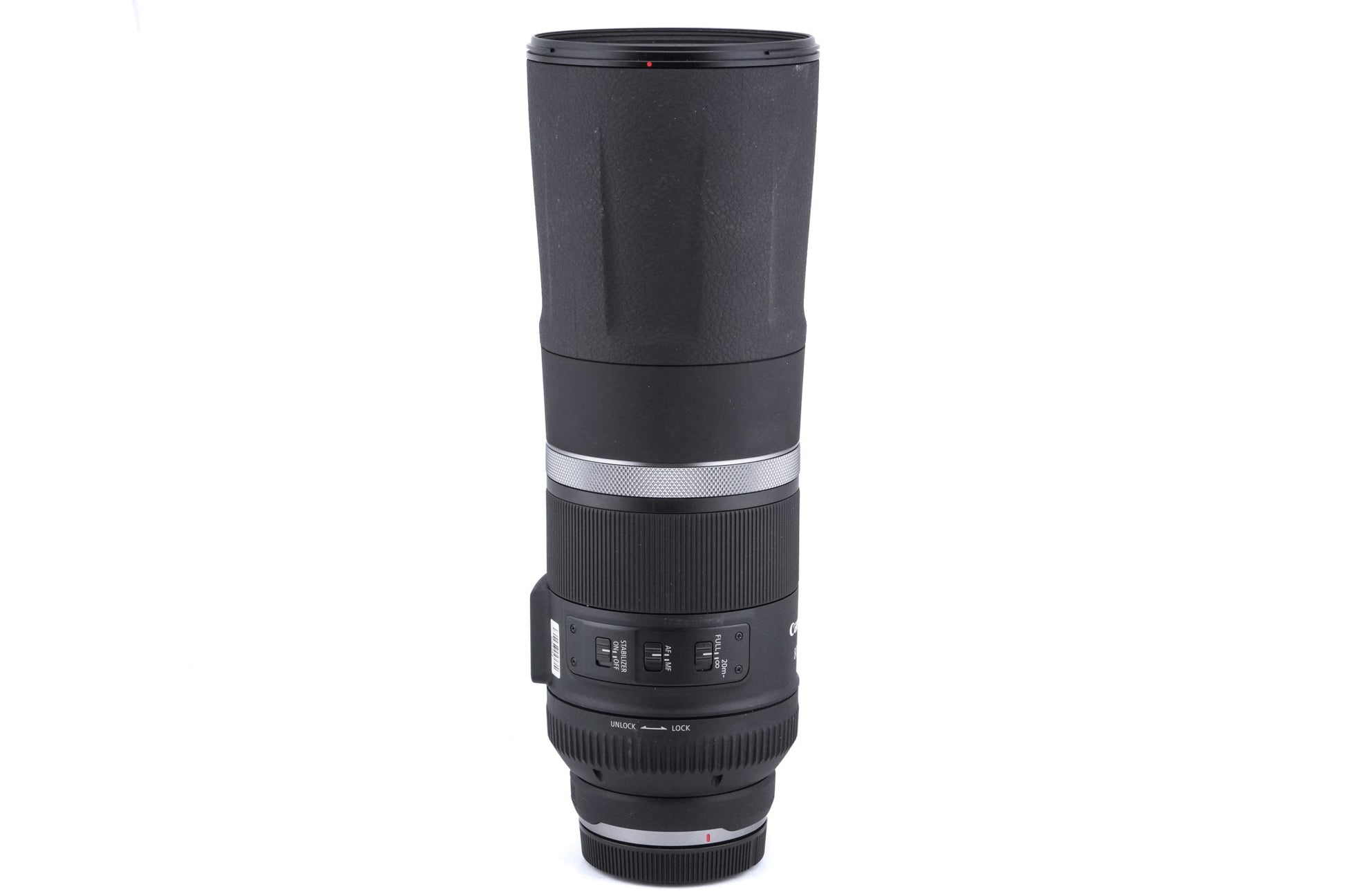 Autofocus telephoto lens made for RF-mount digital mirrorless cameras by Canon. It has image stabilization (IS) and uses a stepping motor (STM) for autofocus. It needs to be extended during use. Plastic and metal body available in white.