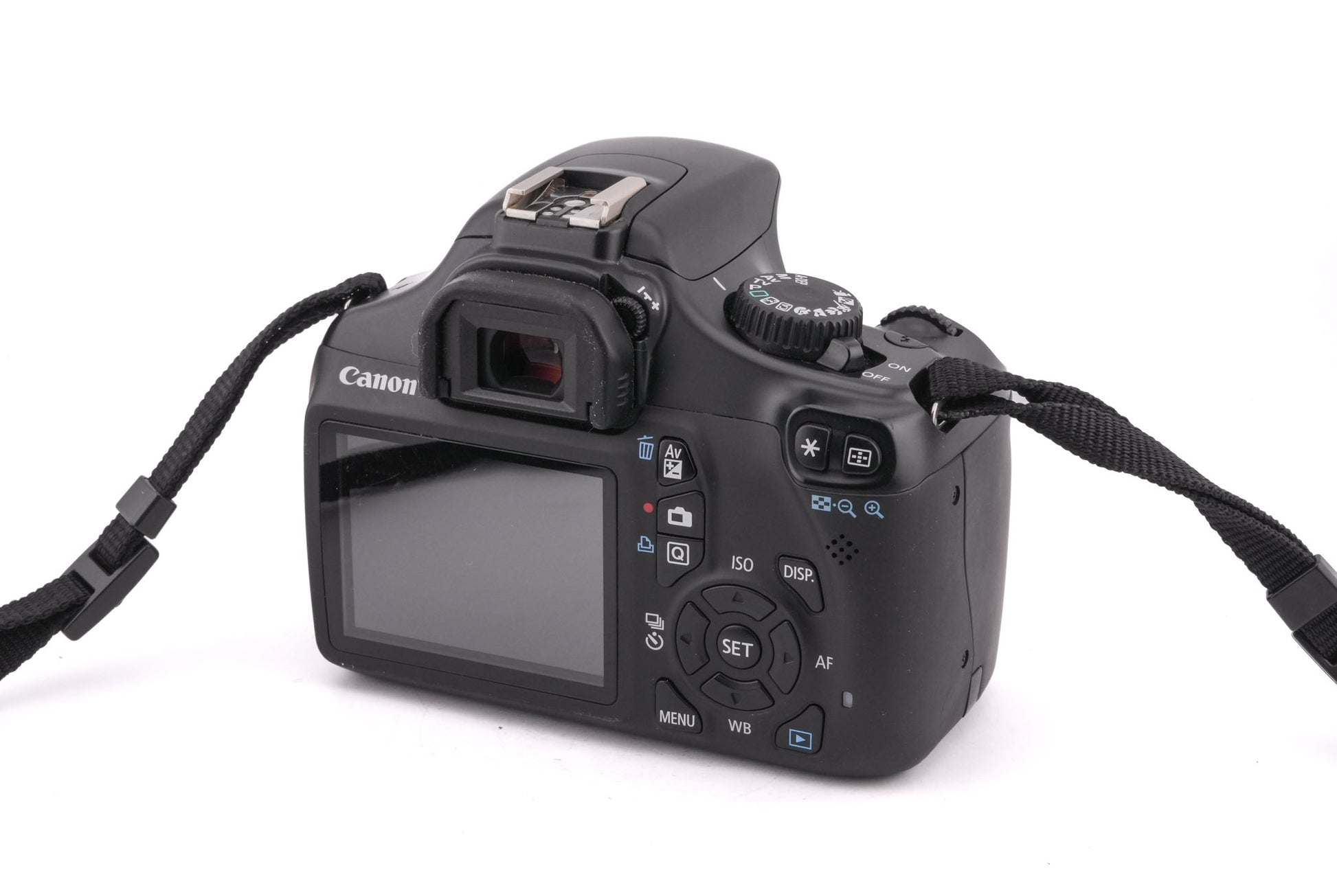Autofocus APS-C EF-S-mount DSLR camera released by Canon in 2011. Works with both EF and EF-S lenses. Known as the Rebel T3 in North America. Plastic body available in black, brown, and red.