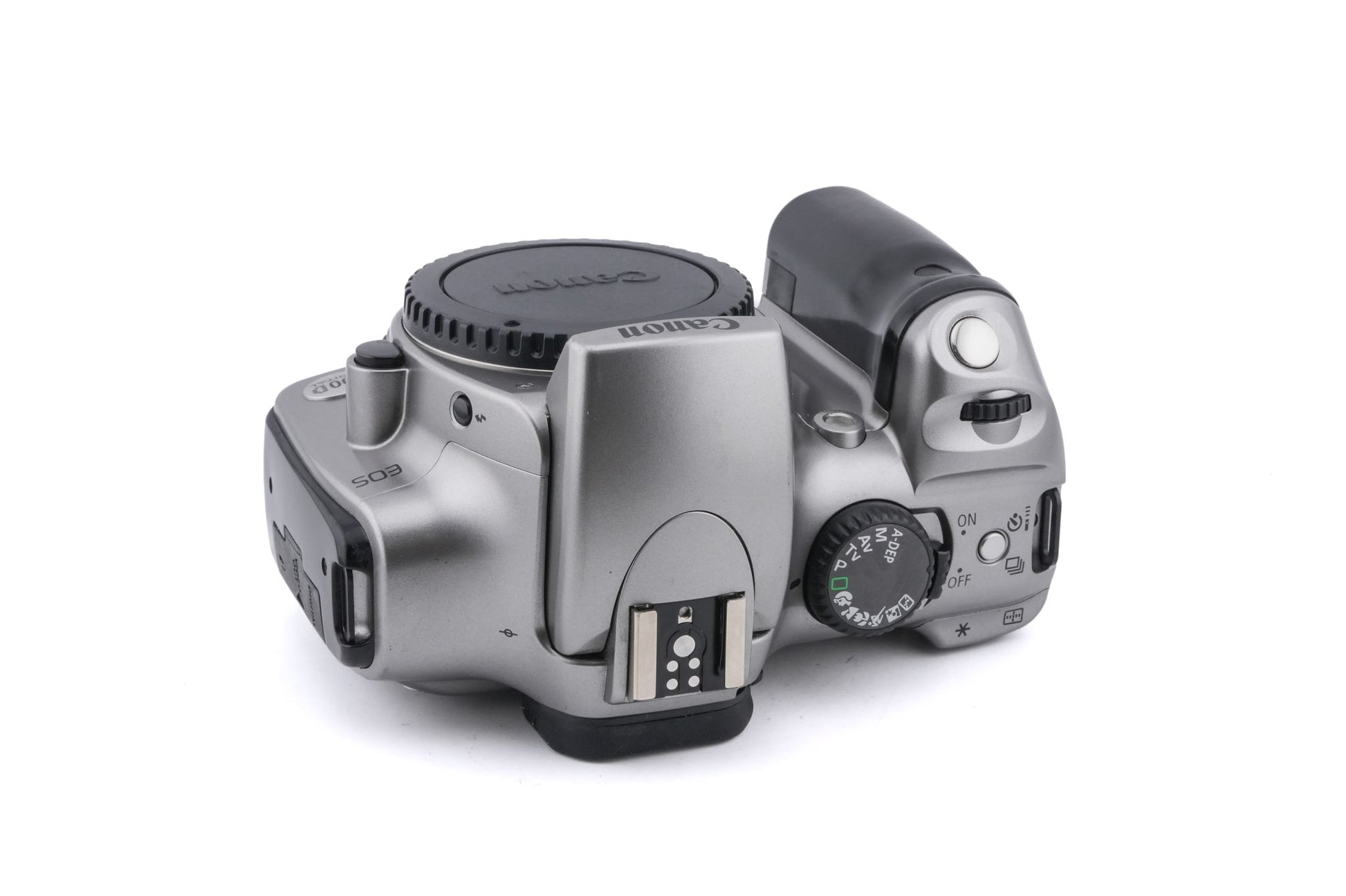 Autofocus APS-C DSLR camera introduced by Canon in 2003. It was the first camera to use the Canon EF-S lens mount. It has 7 AF points and 35-zone evaluative metering. Also known as the Digital Rebel (NA) and Kiss Digital (JP). Plastic body in silver or black finish.