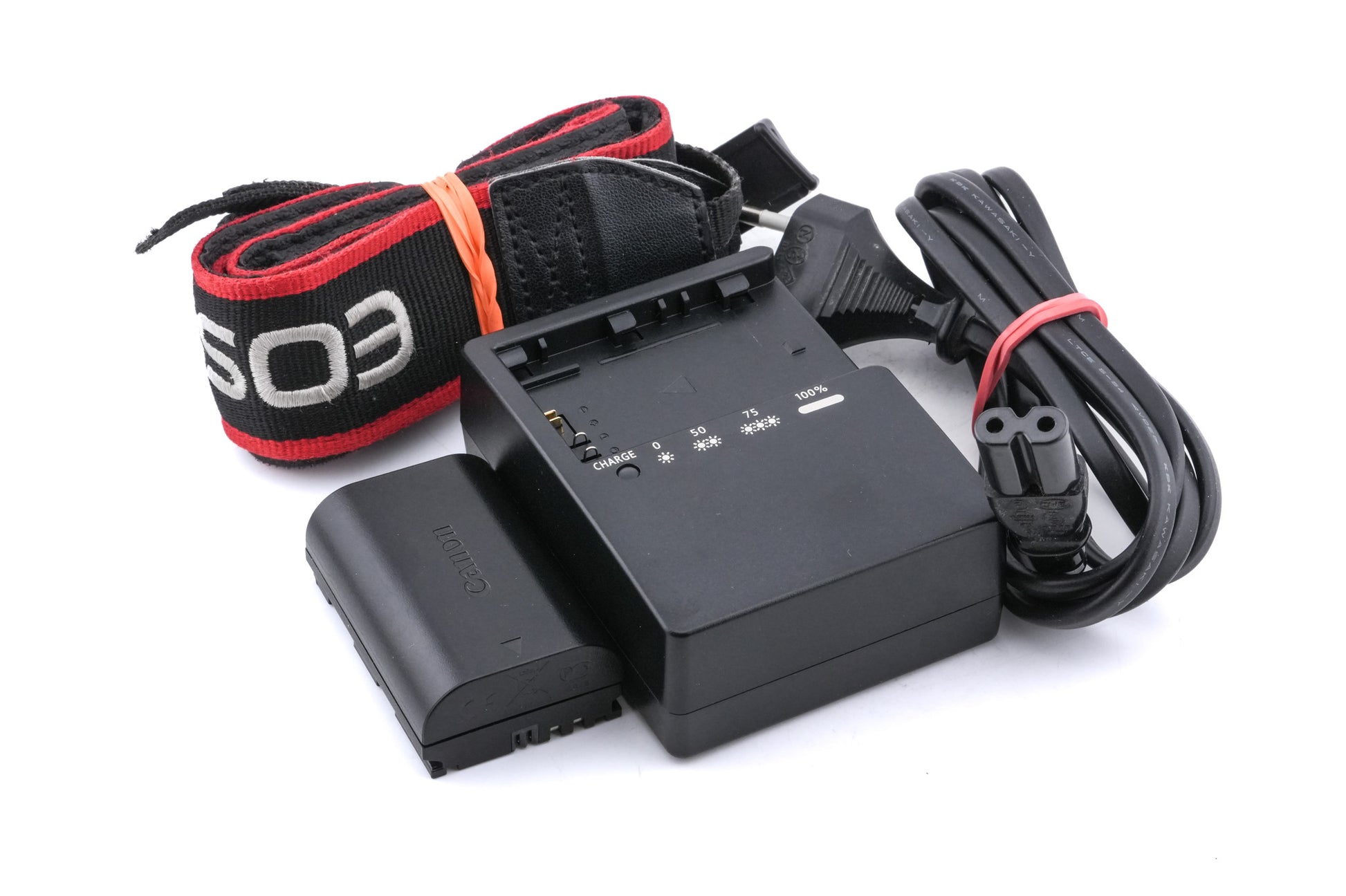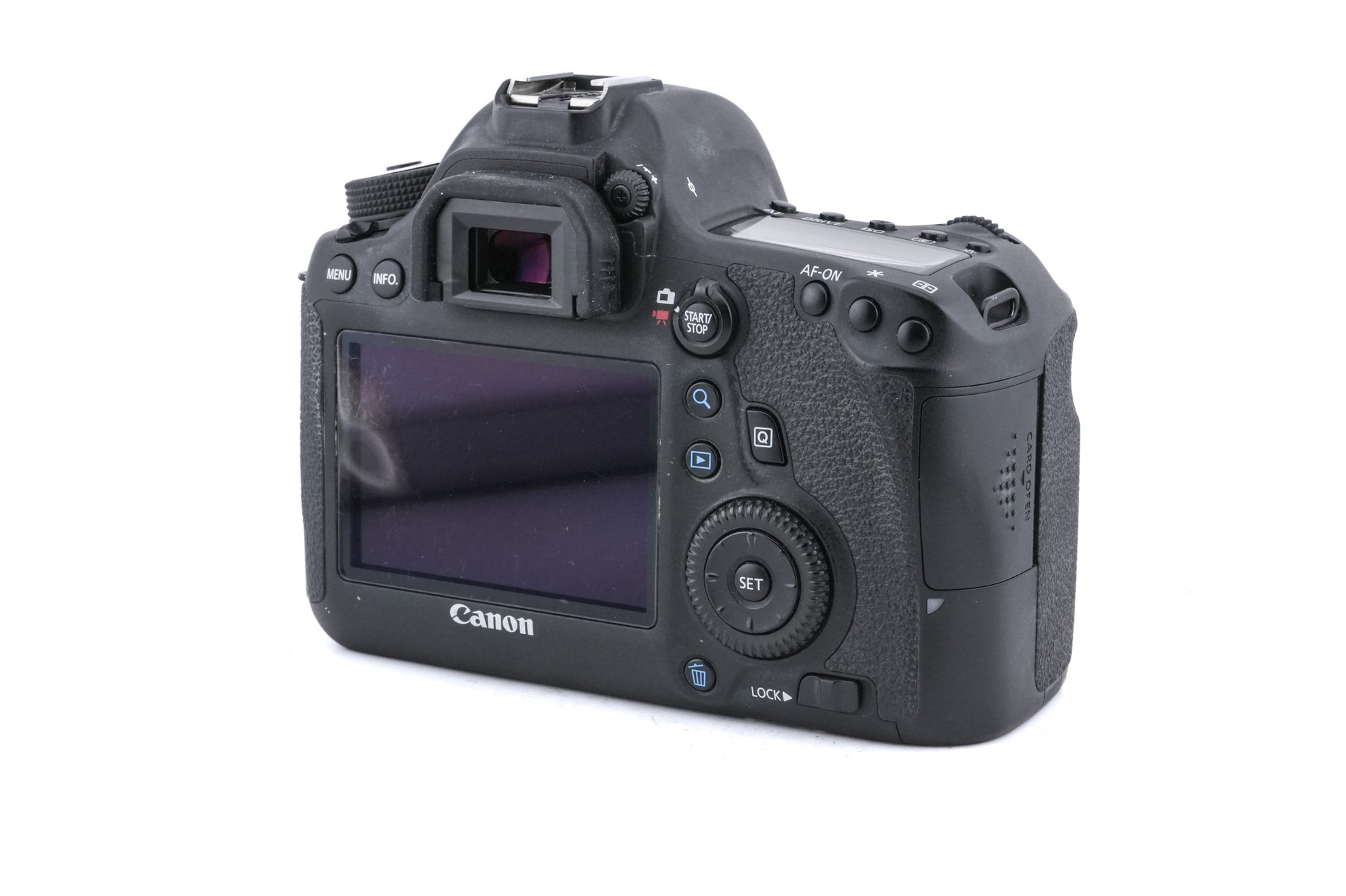 Autofocus full-frame EF-mount DSLR camera released by Canon in 2012. The (WG) model has WiFi and GPS functions. Features 11-point autofocus and full HD video capability. Metal and plastic body in black.