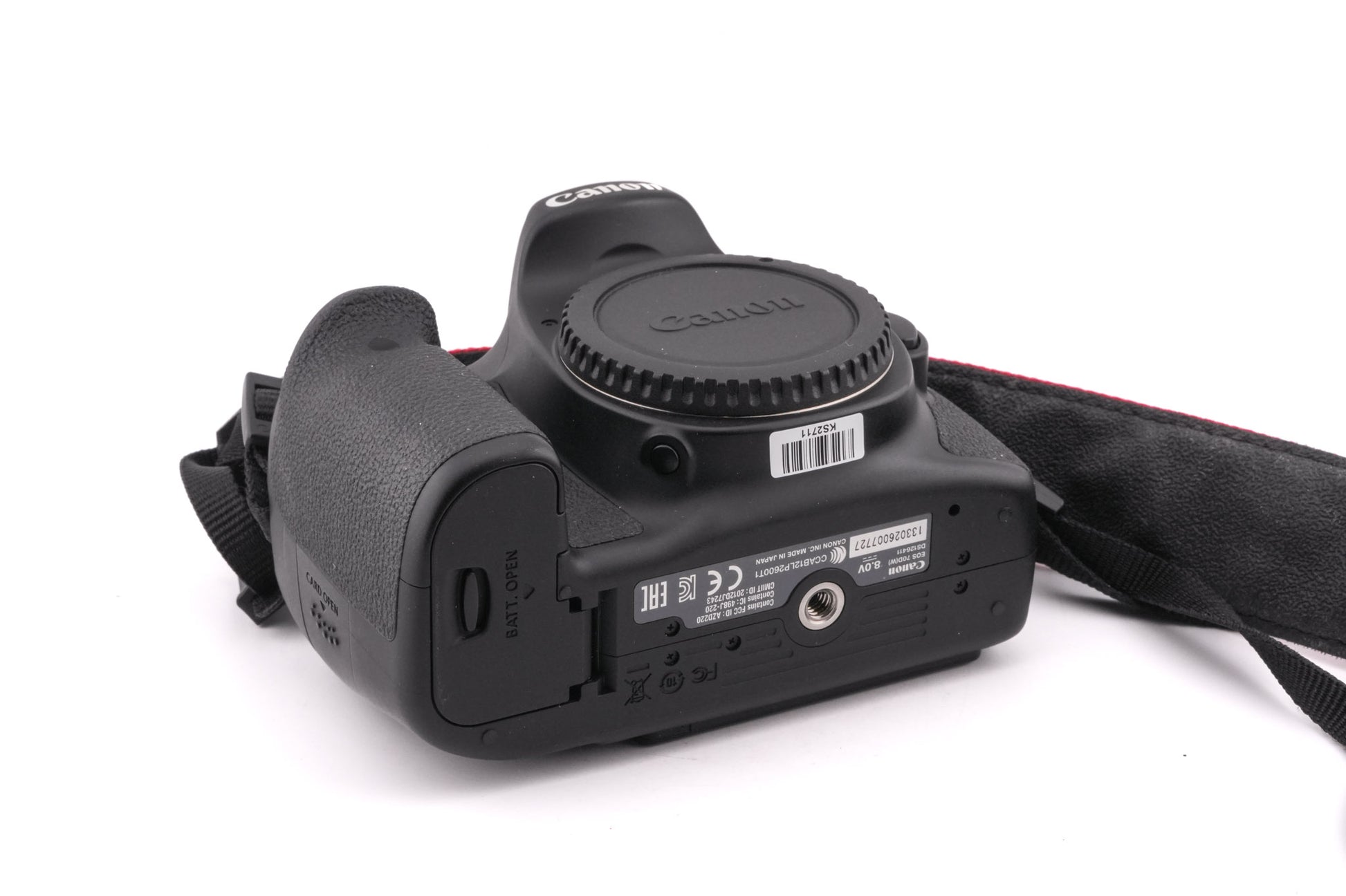 Autofocus APS-C EF-mount DSLR camera released by Canon in 2013. It has 1080p Full HD video recording, a built-in flash, and a 3" rear LCD. Plastic body available in black.