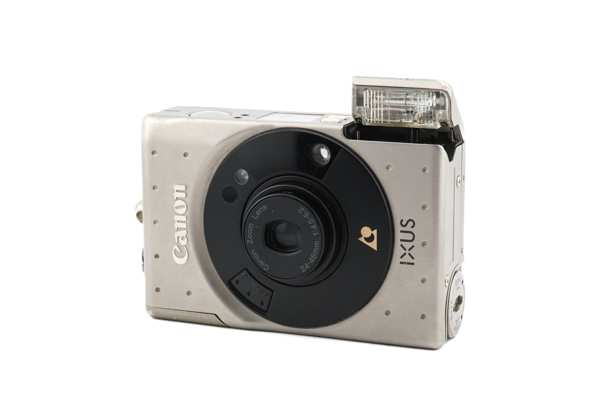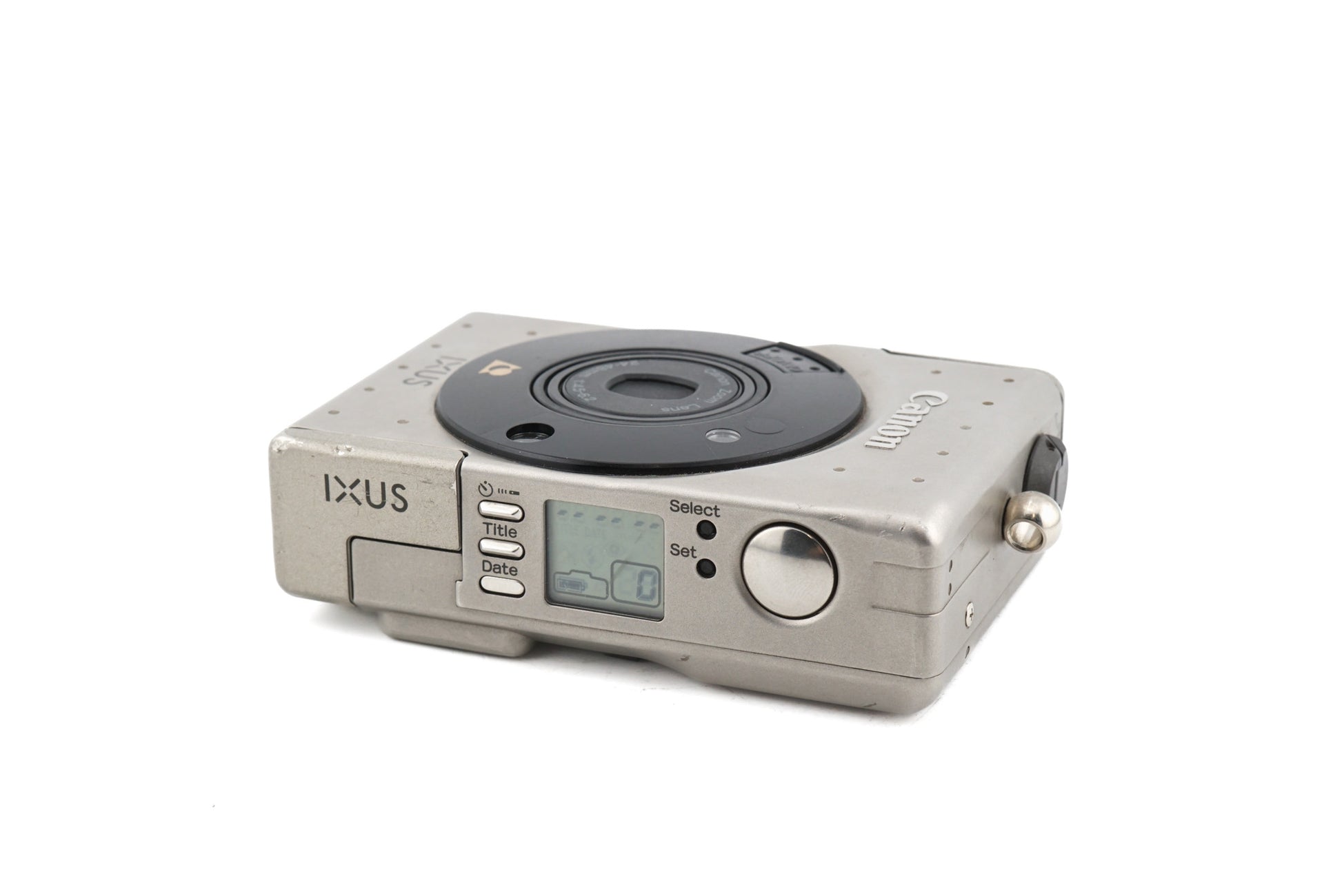 Autofocus APS point-and-shoot camera released by Canon in 1996. This was Canon's first APS format camera. The original price (48,000 Yen) is equal to around 330 Euros in 2024. It was also known as the IXY (JP) and ELPH (NA). Metal body available in champagne.