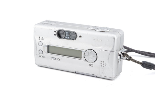 Autofocus APS point-and-shoot released by Canon in 2002. It has a built-in flash and a sliding lens cover. Plastic and metal body available in silver.