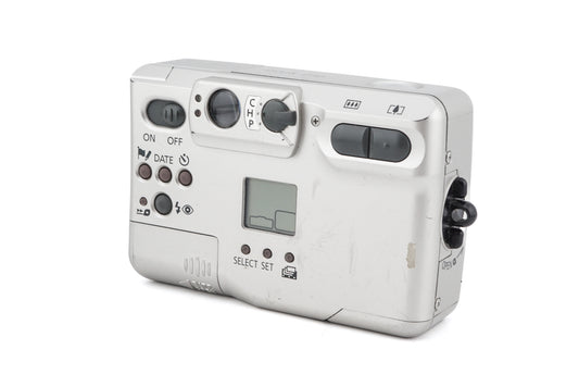 Autofocus APS compact camera released by Canon. Plastic body available in silver.