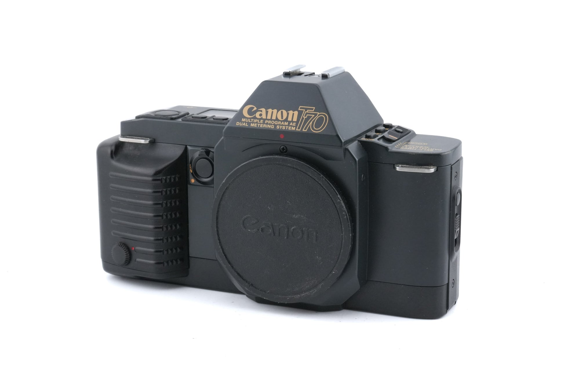 Manual focus FD-mount 35mm SLR released by Canon in 1984. The original cost (69,000 Yen) is equivalent to ~560 Euros in 2024. Plastic body available in dark grey and black.