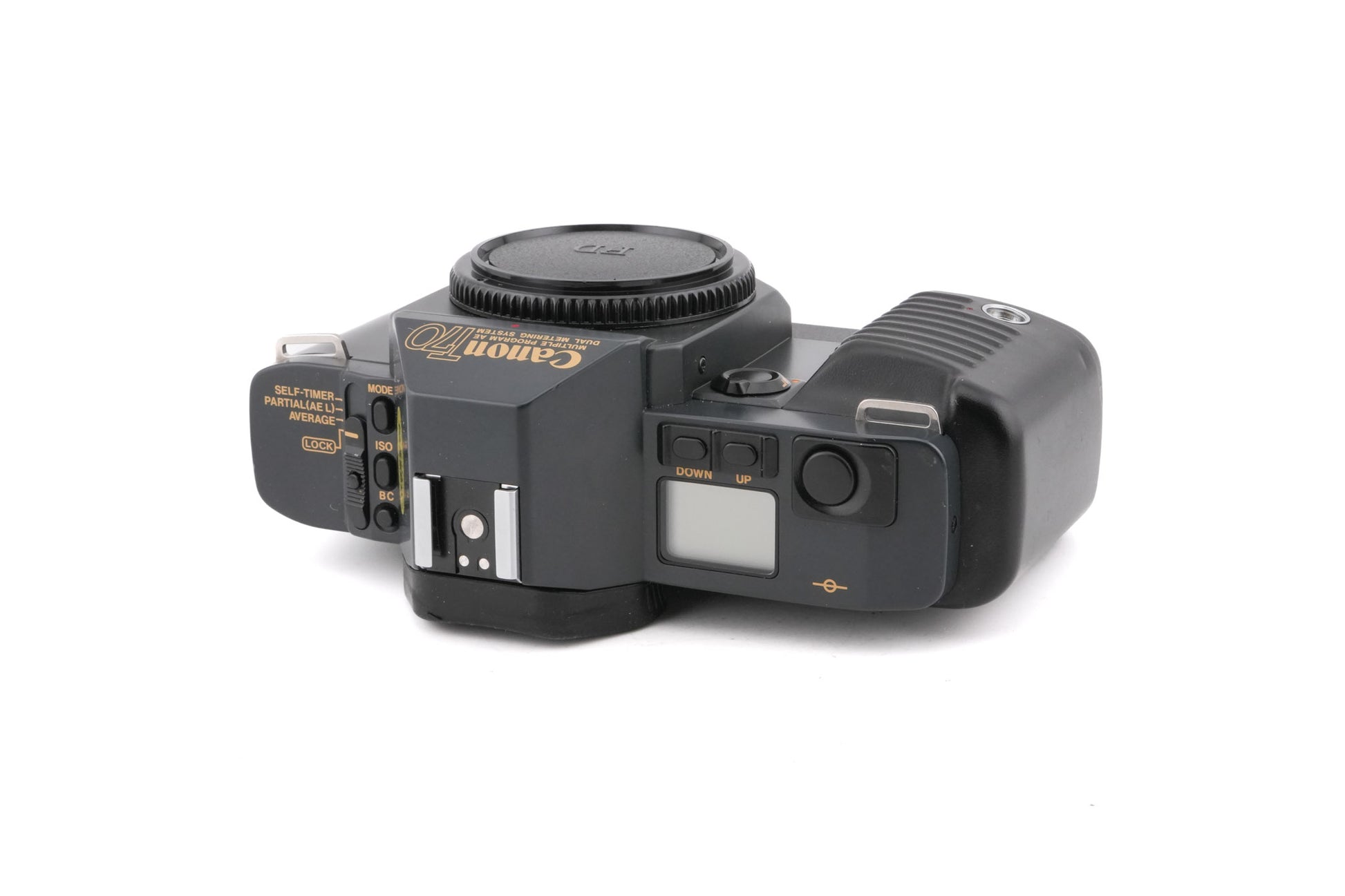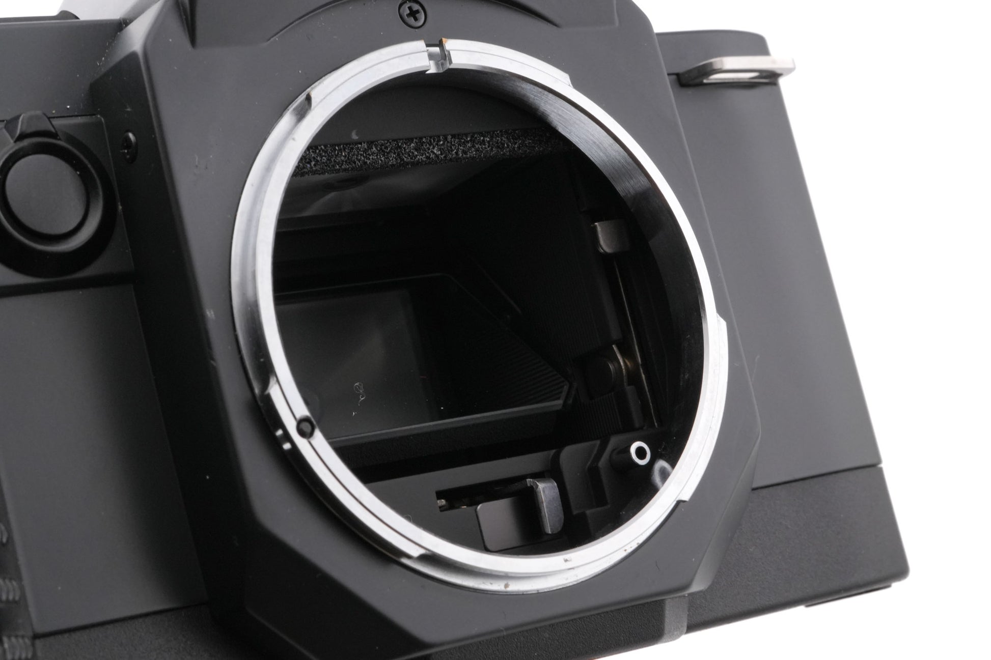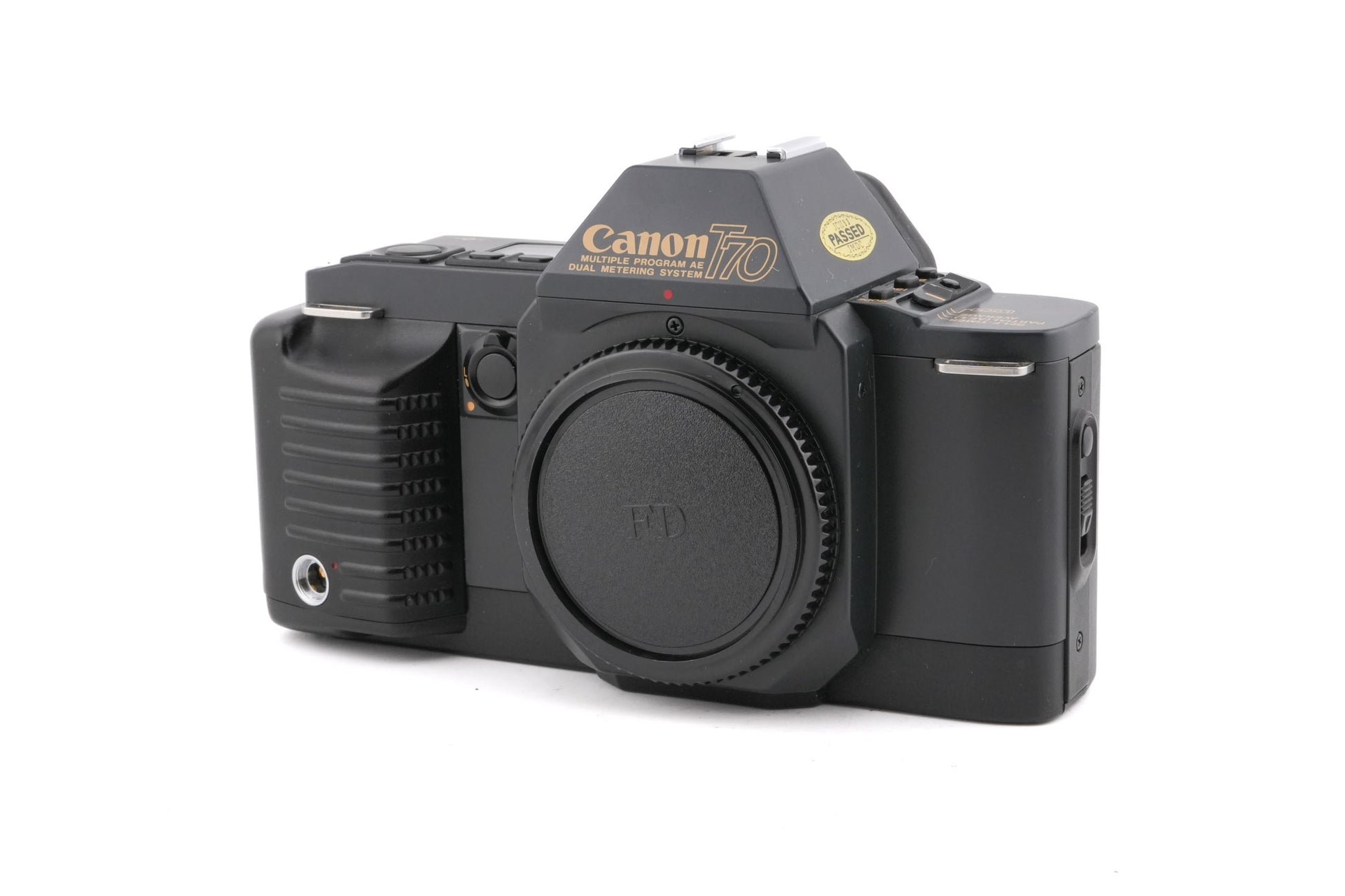 Manual focus FD-mount 35mm SLR released by Canon in 1984. The original cost (69,000 Yen) is equivalent to ~560 Euros in 2024. Plastic body available in dark grey and black.