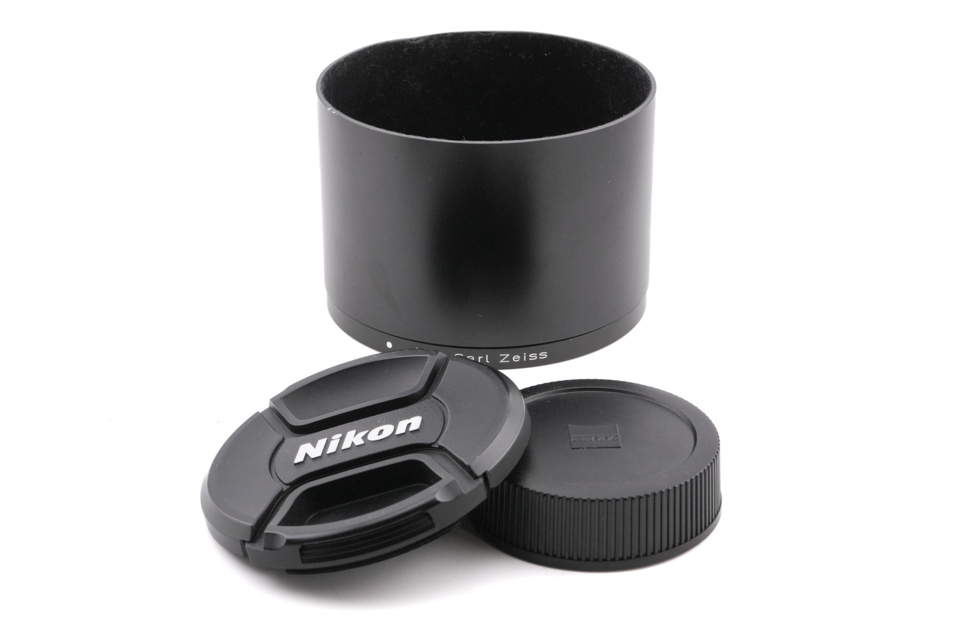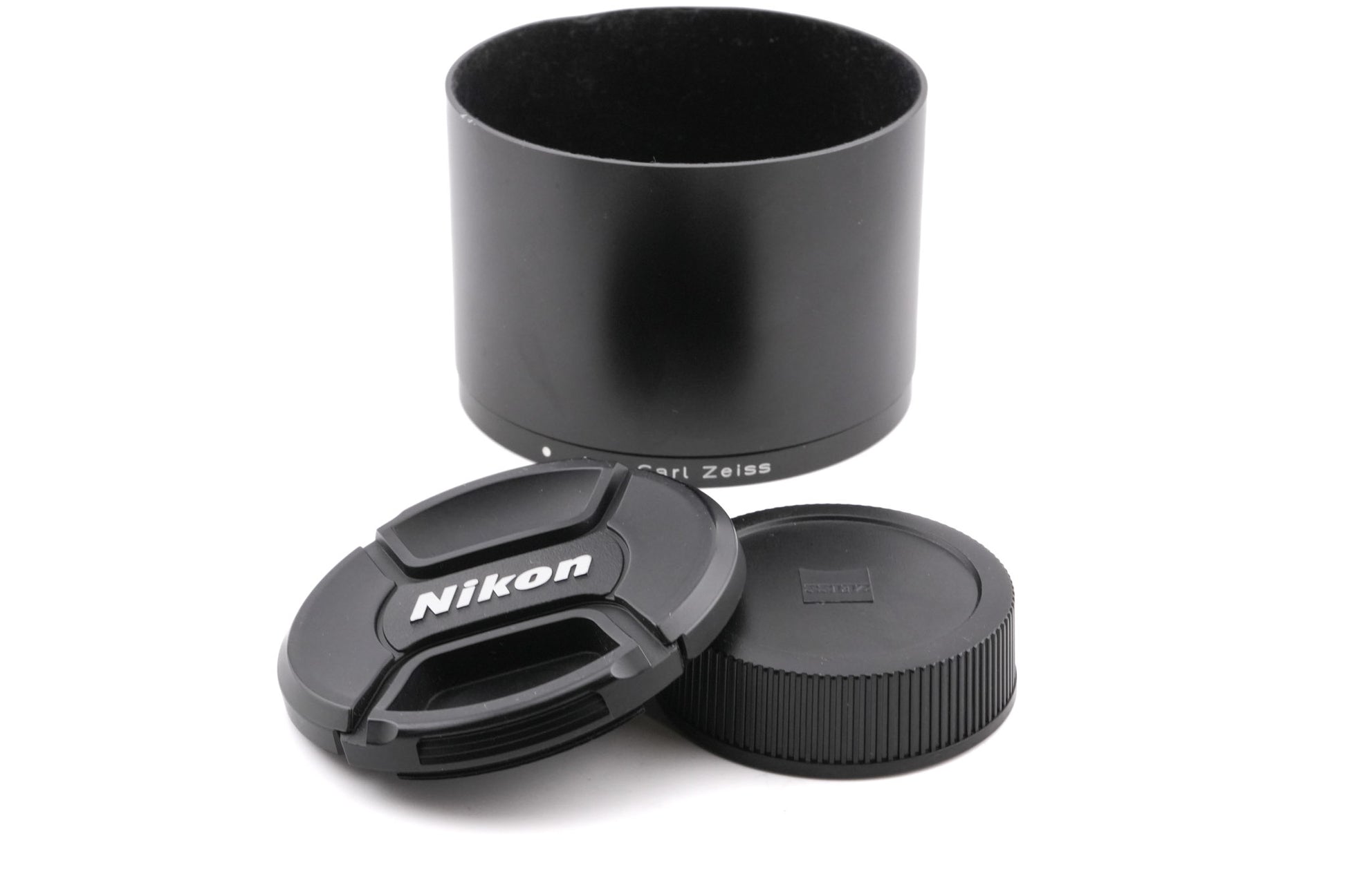 Manual focus short-telephoto lens for Nikon F-mount DSLR/SLR camera bodies made by Carl Zeiss. It features a 1:2 magnification for macro photography. Metal construction available in black.