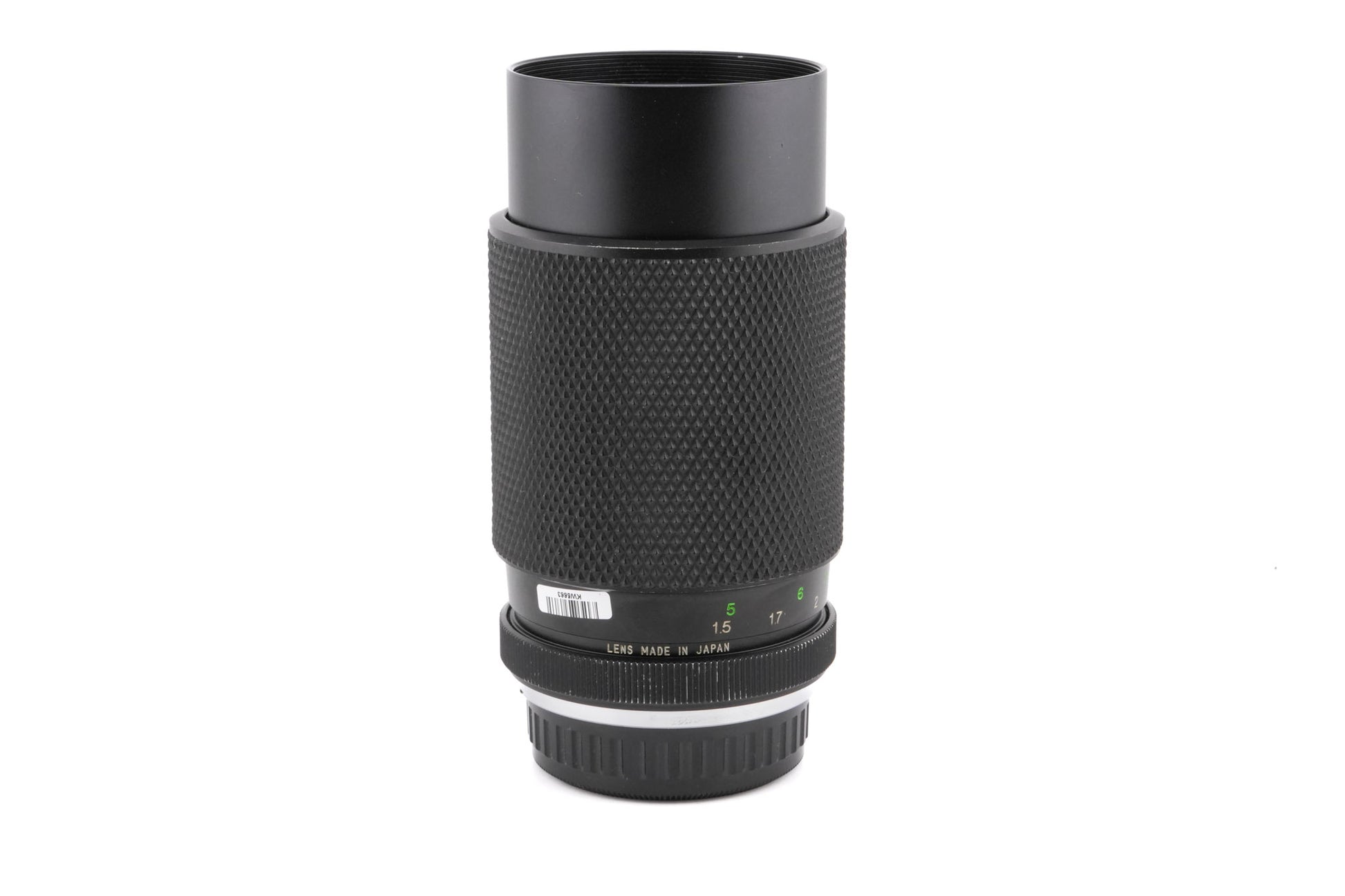 Manual focus telephoto zoom lens made for Pentax K mount SLRs by Chinon. Metal body available in black.
