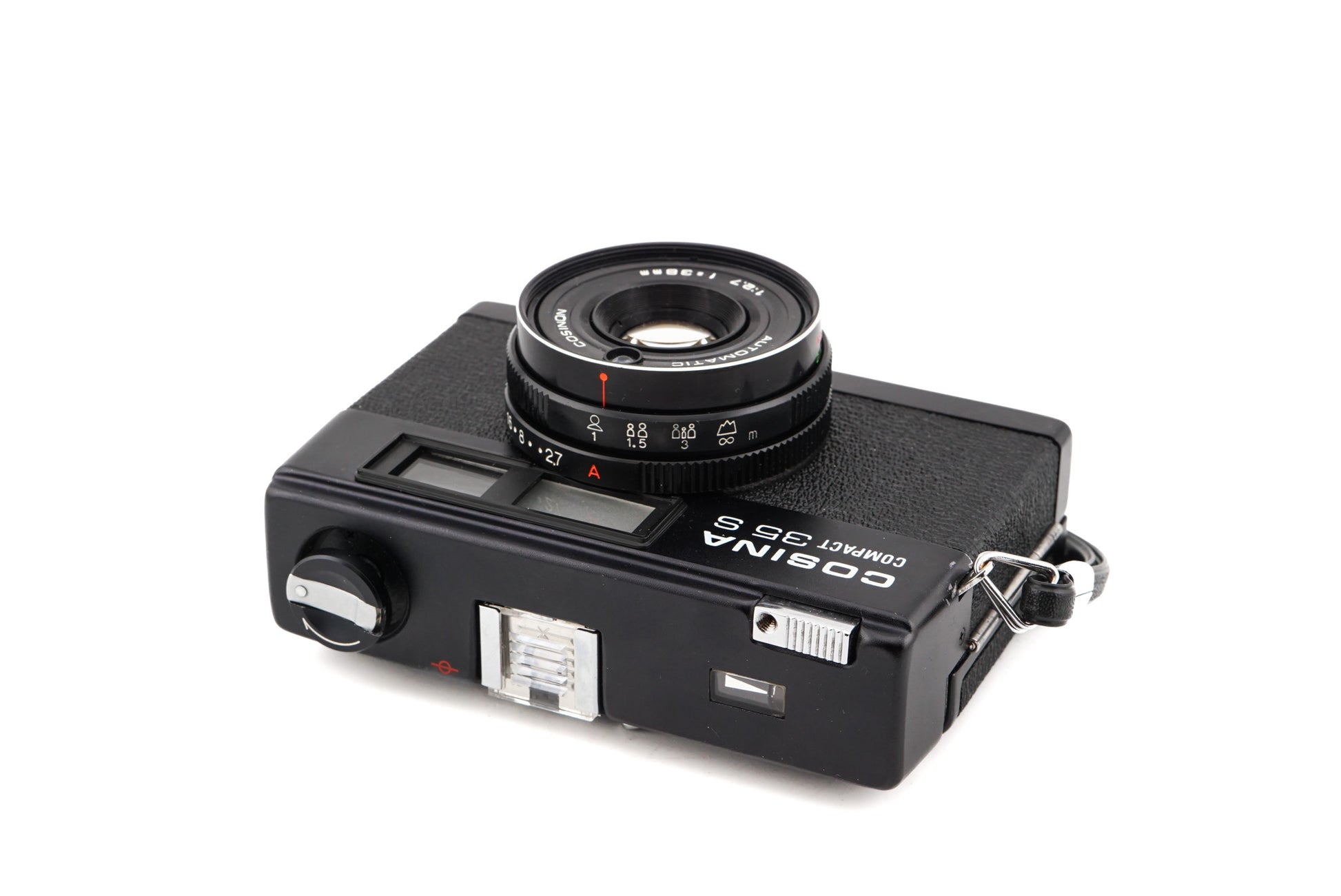 Zone focus 35mm compact camera made by Cosina. Metal construction available in black.