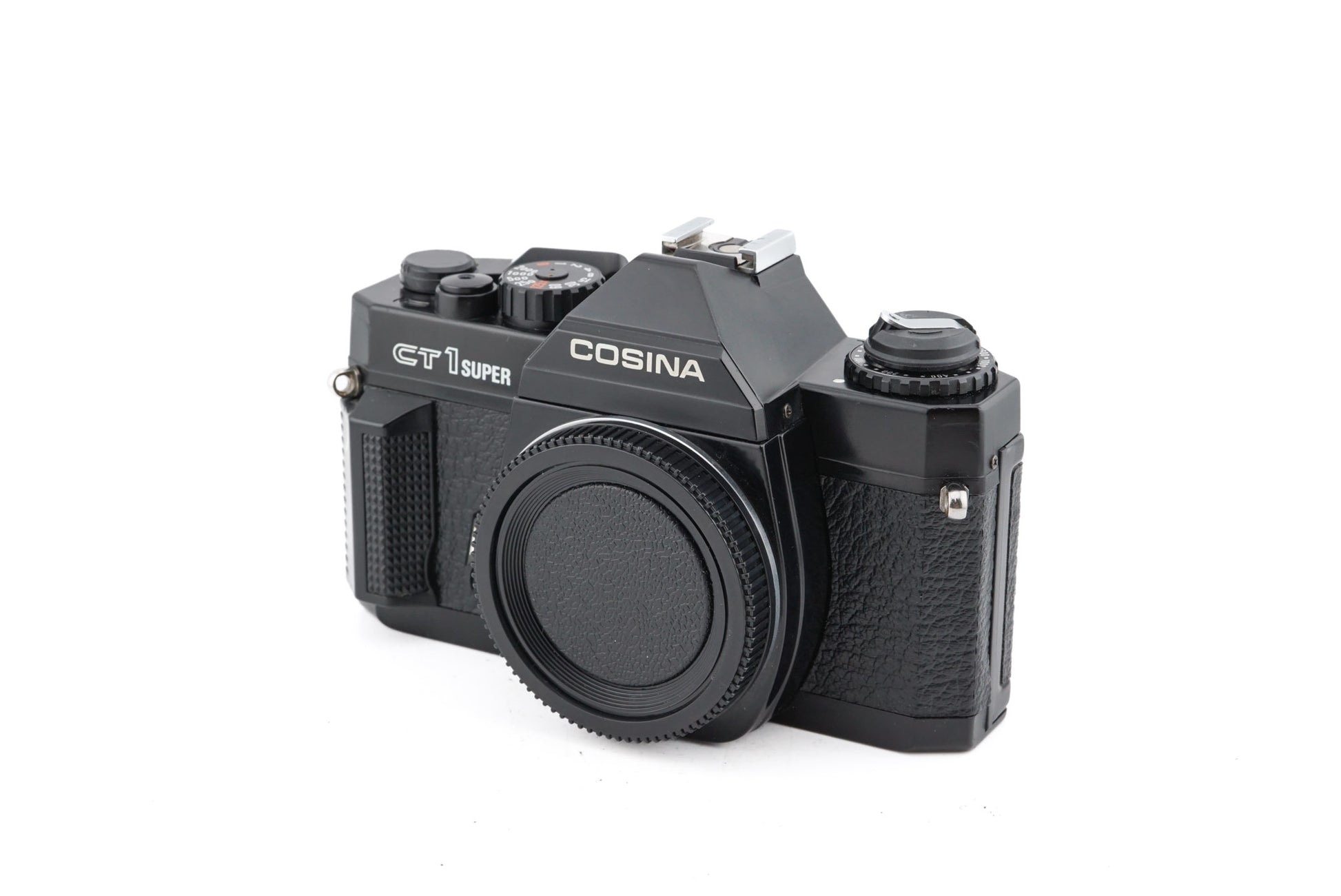 35mm Pentax K mount SLR camera made by Cosina. Mechanically controlled with batteries only needed for the light meter. A successor to the CT-1 and CT-1A with a faster shutter speed. Has a hot shoe and a self-timer but no depth-of-field preview. Plastic body available in black.