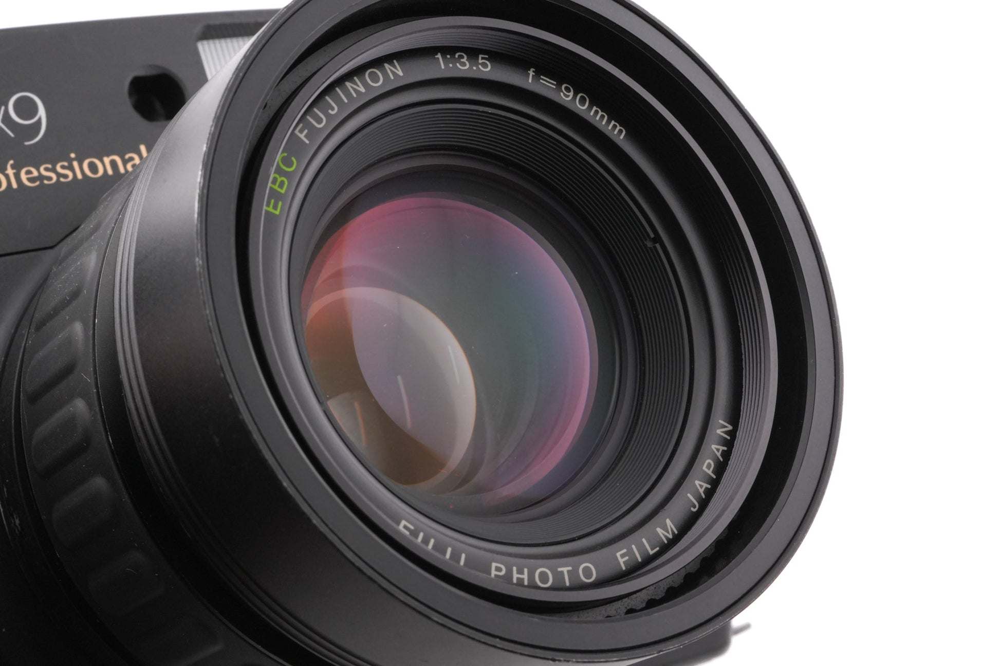 - Lens: Fuji 90mm f3.5 EBC Fujinon (5 elements, 5 groups)
