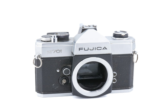 Introduced in 1971 Fujica ST701 is fully mechanical film SLR-camera with a built-in light meter. It has nice bright view-finder and focal-plane shutter with speeds from 1-1/1000s + B.
