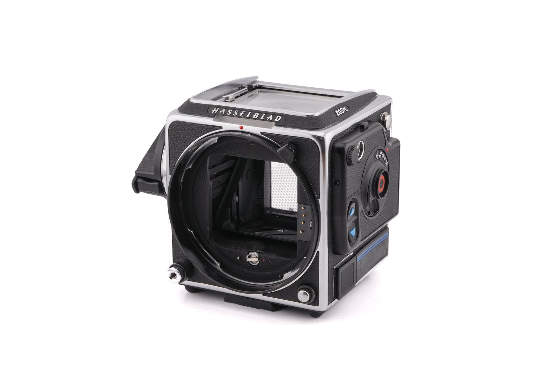 Manual focus V-series 120 SLR camera released by Hasselblad in 1994. It differs from most V-series cameras by having a focal plane shutter in the body instead of a leaf shutter in the lens. It also has access to programmed autoexposure and a TTL light meter. There is a dedicated series of F lenses without shutters, but the camera can also be used with CF leaf shutter lenses. Metal body available in black/silver.
