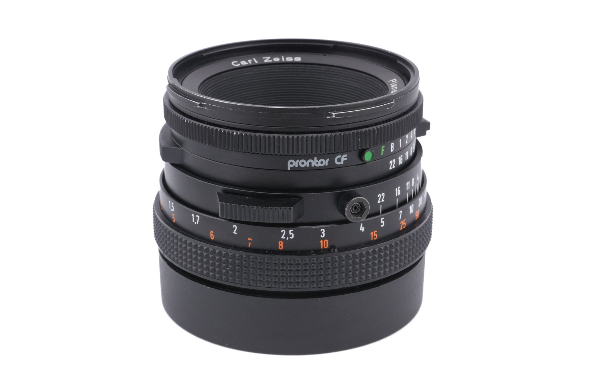 Manual focus normal lens made for Hasselblad V system medium format SLR cameras by Carl Zeiss starting in 1982. It gives the equivalent field of view to a 44mm lens on full frame/35mm and has Carl Zeiss' T* coatings. Metal body available in black.