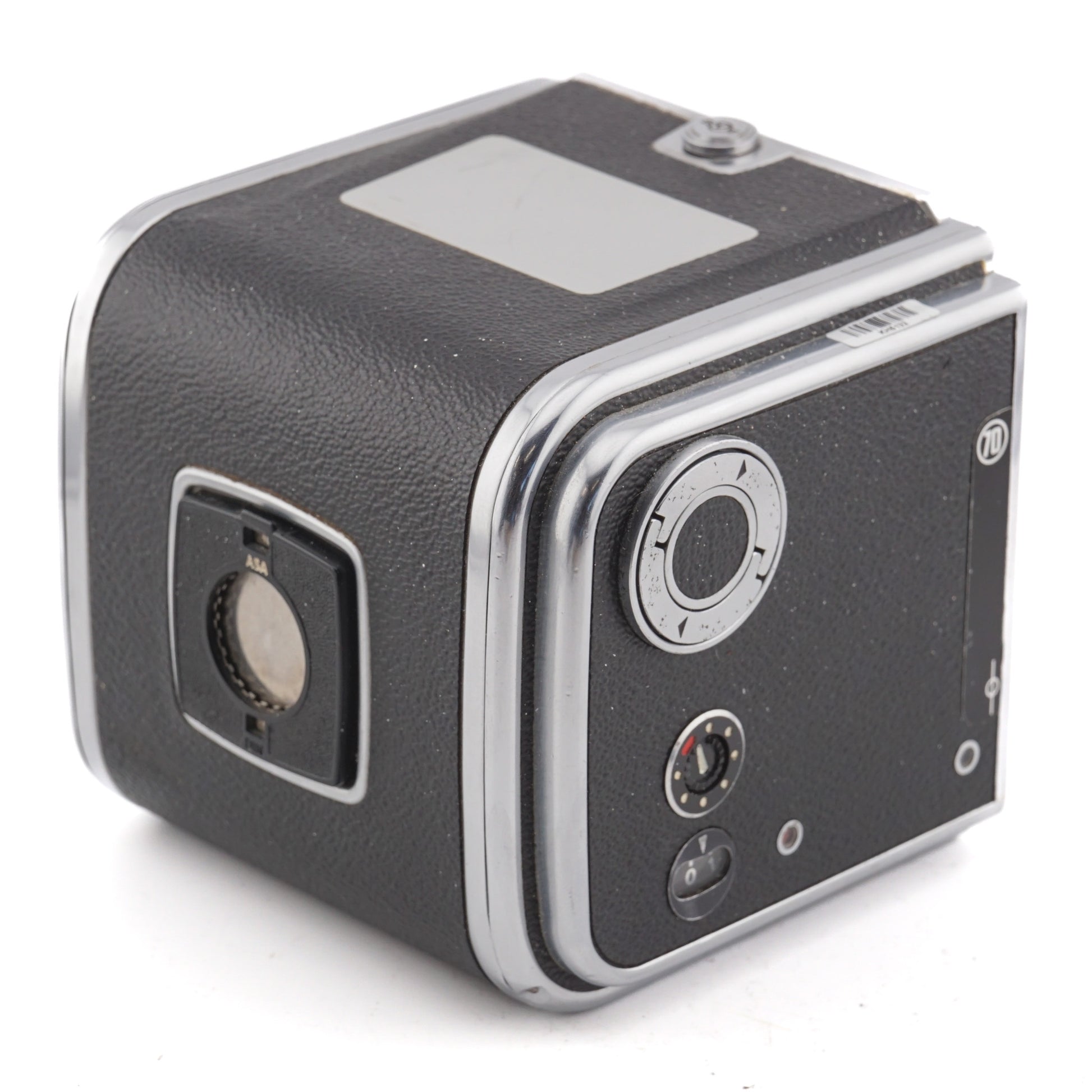 70mm film magazine made for V-series medium format SLR cameras introduced by Hasselblad. The film is no longer readily available. Metal body available in silver (30066) and black (30139).