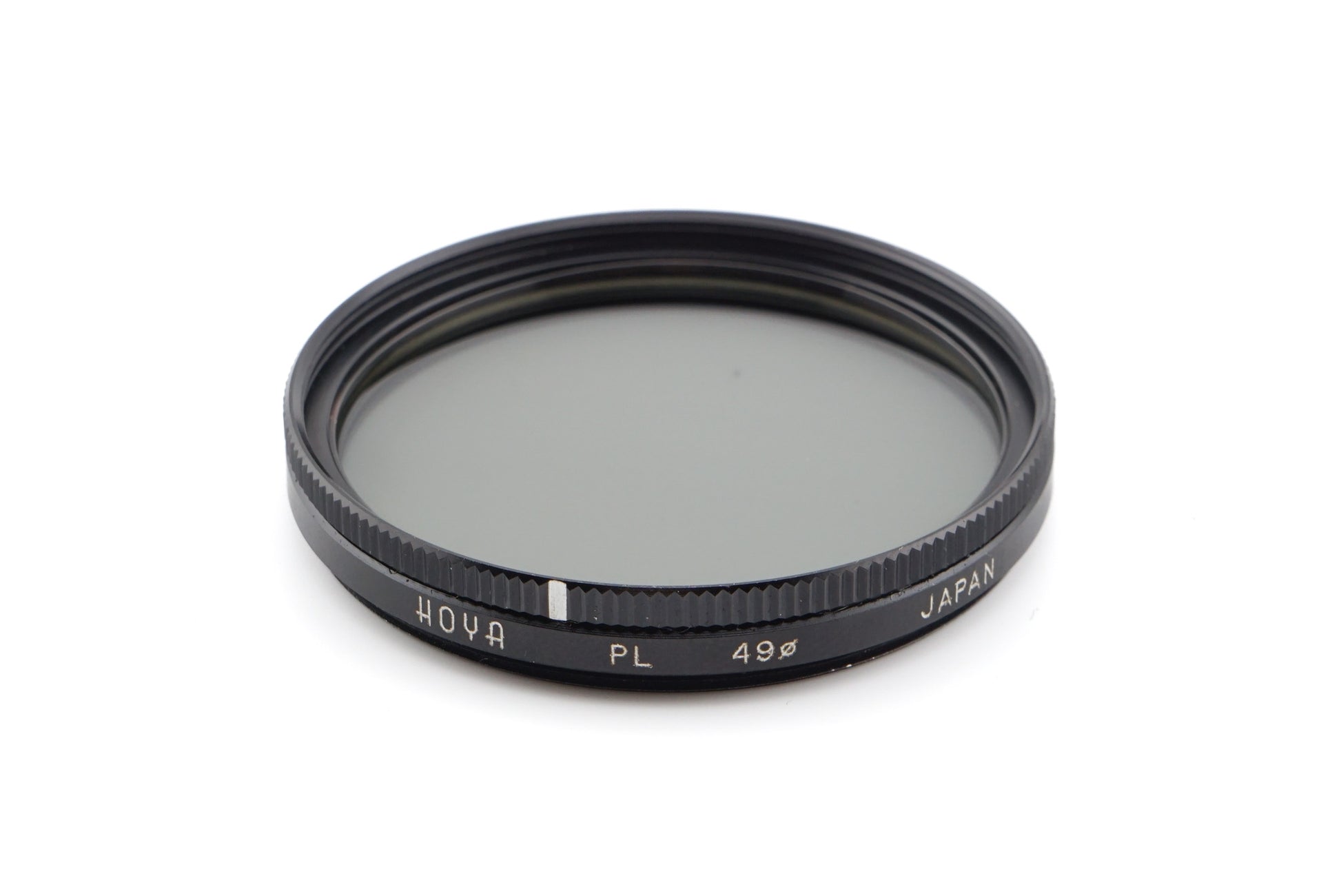 Hoya polarizing filter that fits lenses with 49mm filter threads. Metal construction in black finish.