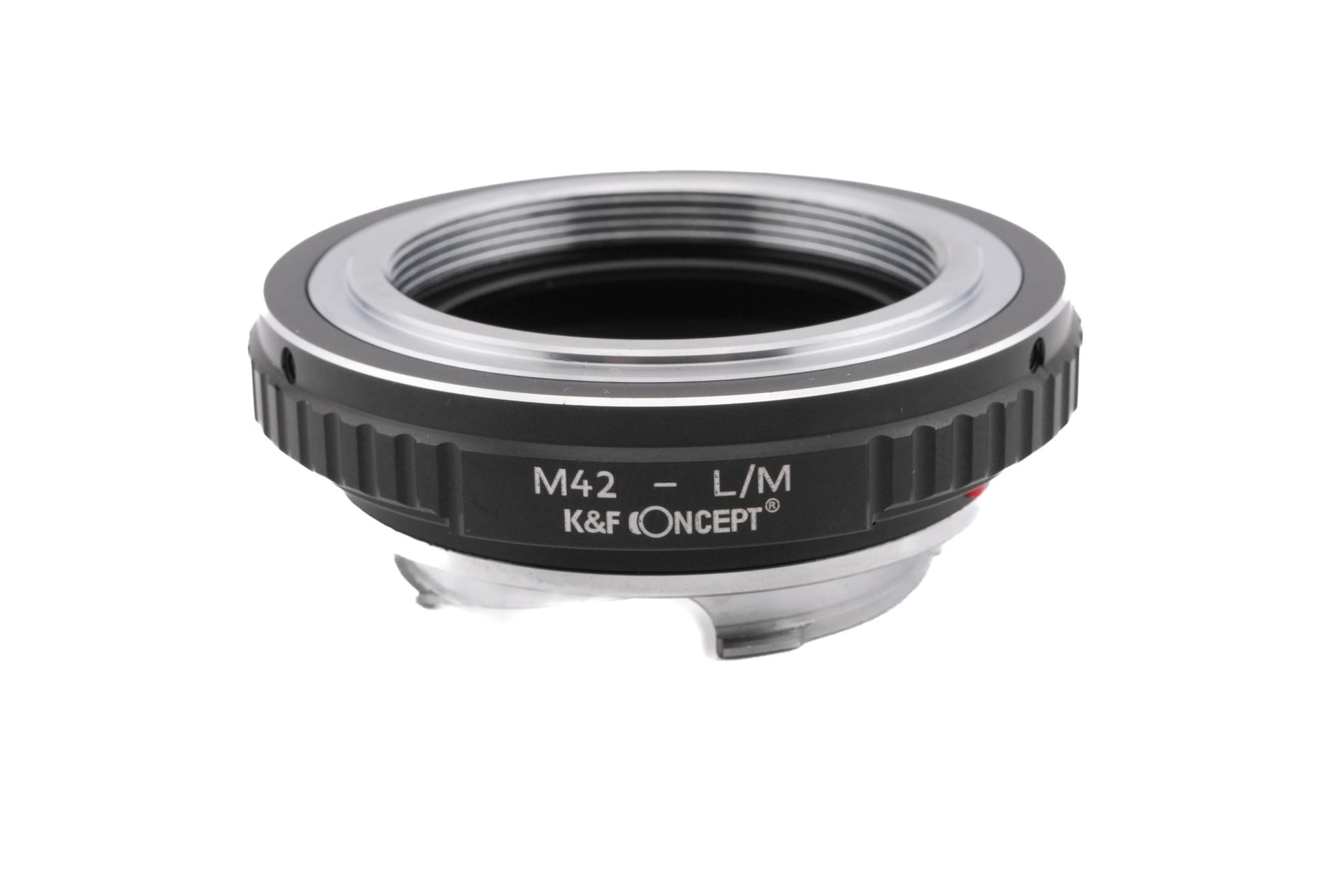 Lens adapter made by K&F Concept. It allows M42-mount lenses to be mounted on M-mount cameras. Metal body available in black.