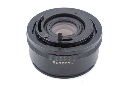 2x teleconverter for Canon FD-mount cameras and lenses. Multiplies the focal length by two and reduces light by two stops.