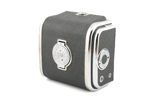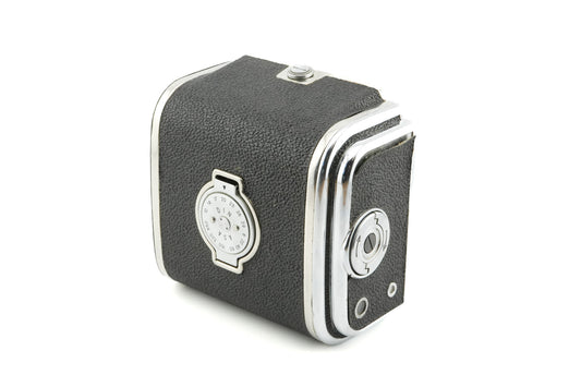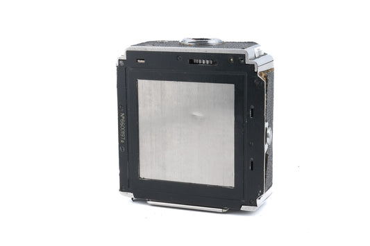 120 medium format film magazine made for Salyut mount 120 SLRs in the Soviet Union. Metal body available in silver.