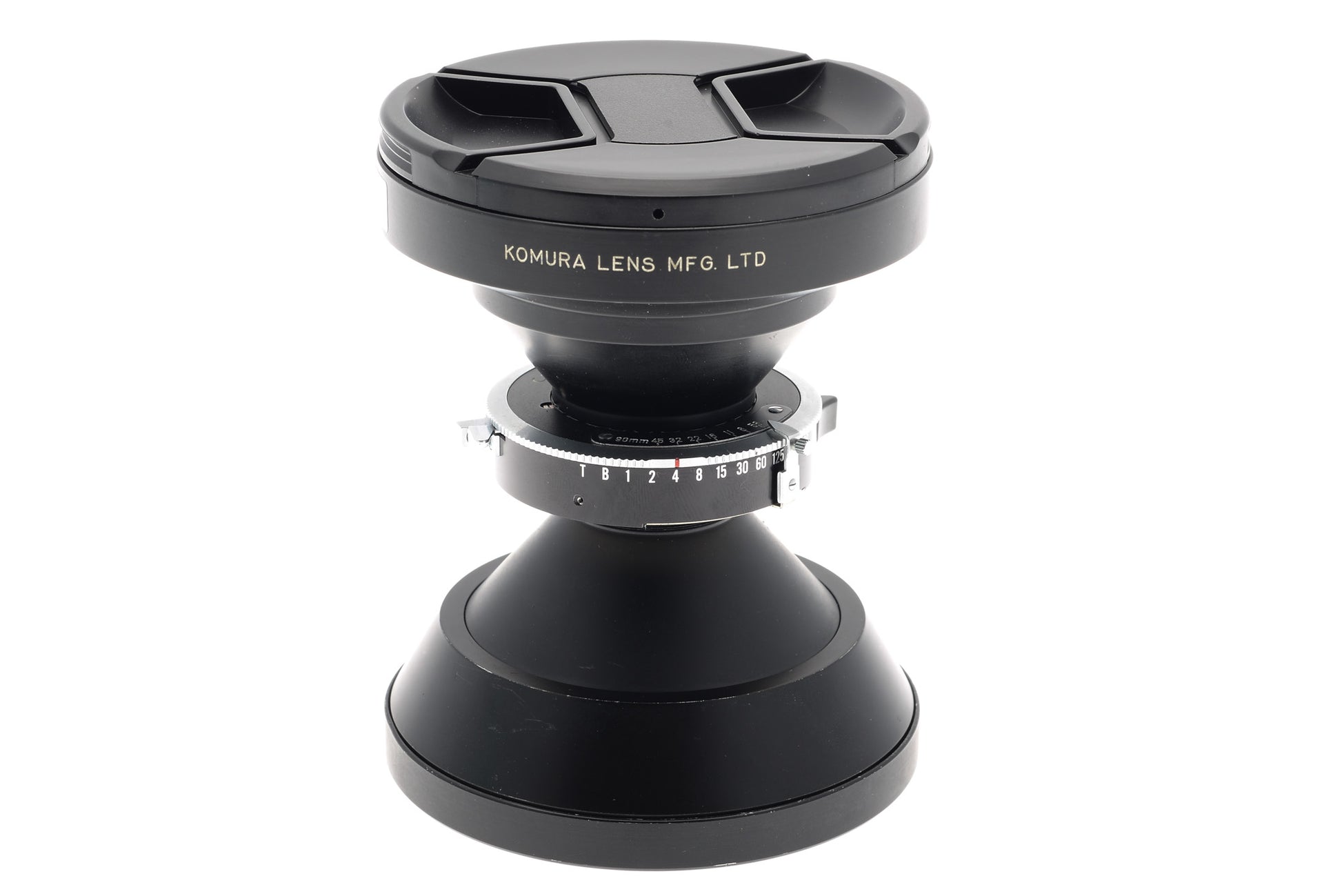 Large format lens with Copal #0 shutters by Komura. Wide-angle lens for 4x5, ultra wide-angle for 5x7. Multicoated. Same lens as Calumet Caltar HR 90mm f5.6. All-metal construction in black finish.