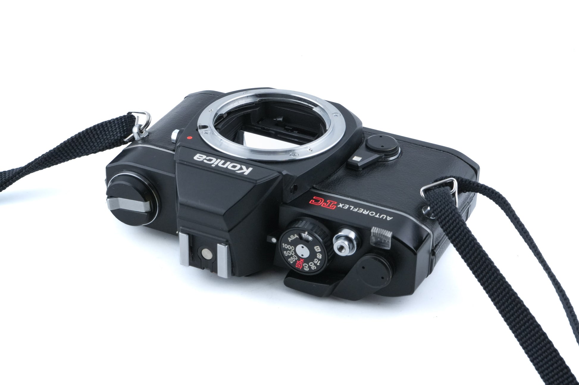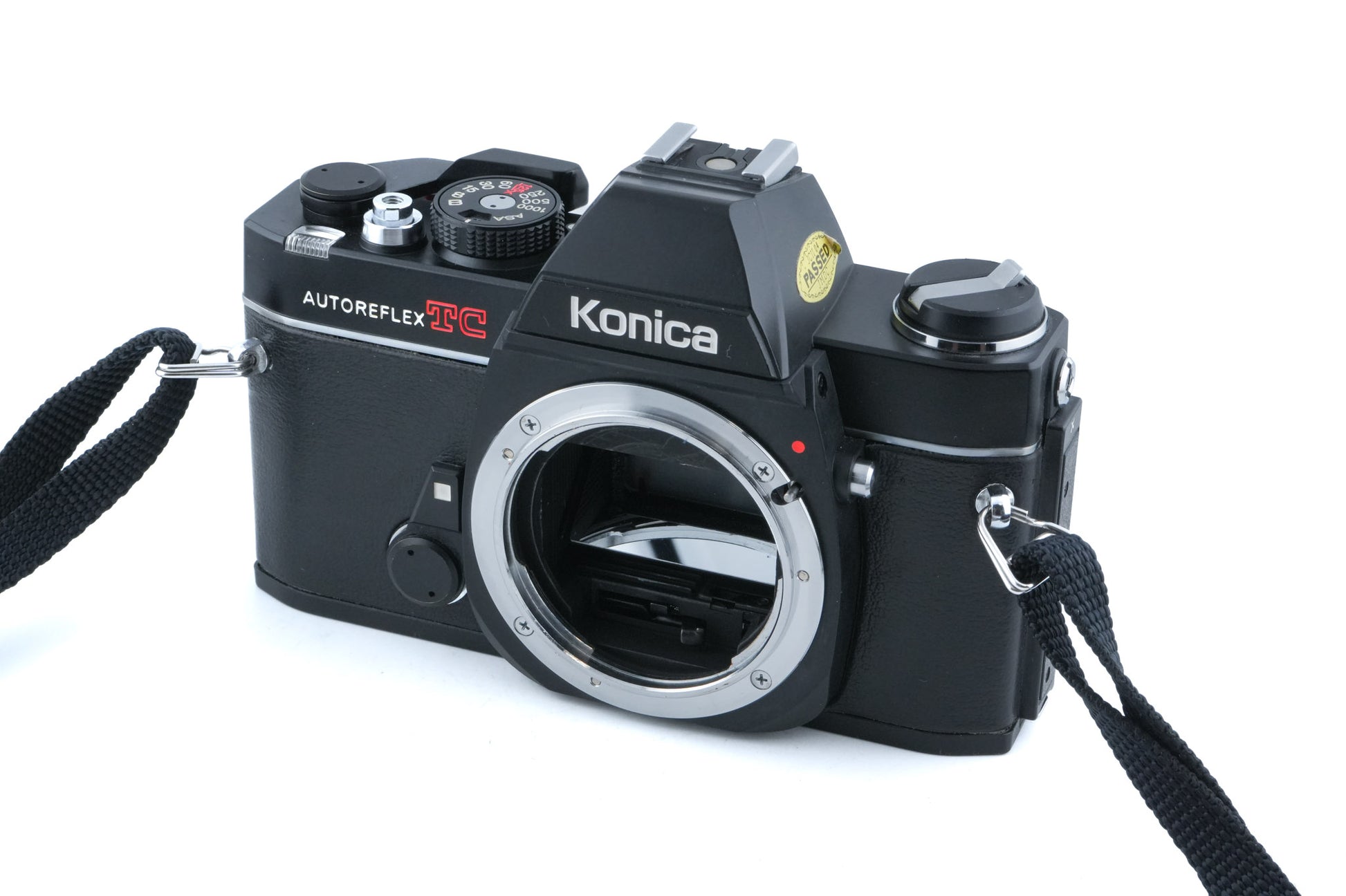 Manual focus AR-mount 35mm SLR released by Konica in 1976. The Autoreflex TC is a simplified version of the Autoreflex T4 with no depth-of-field preview or multi-exposure functions. It is also known as the Acom-1 (JP). It takes an outdated mercury battery, but an internal bridge circuit makes modern 1.5v PX625s work fine. Plastic body available in black.