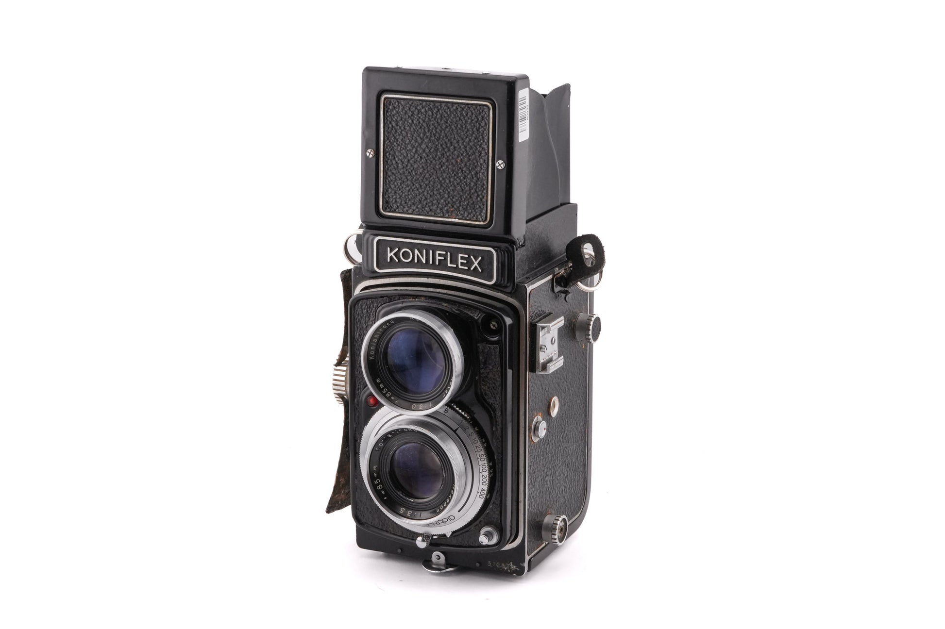 Manual focus 6x6 120 medium format TLR camera introduced by Konica in 1955. This is the second version of the camera with minor improvements. Metal body available in black.