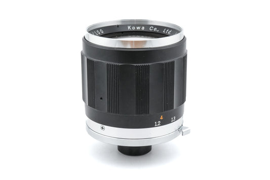 Manual focus telephoto lens made for R mount 35mm SLRs by Kowa. It does not have an aperture ring because the aperture is controlled by the body's leaf shutter. Metal body available in black/silver.