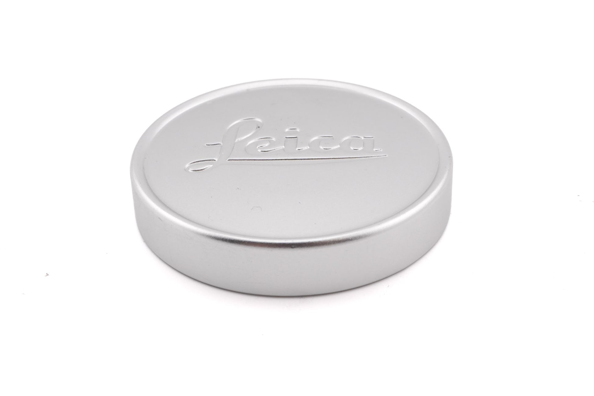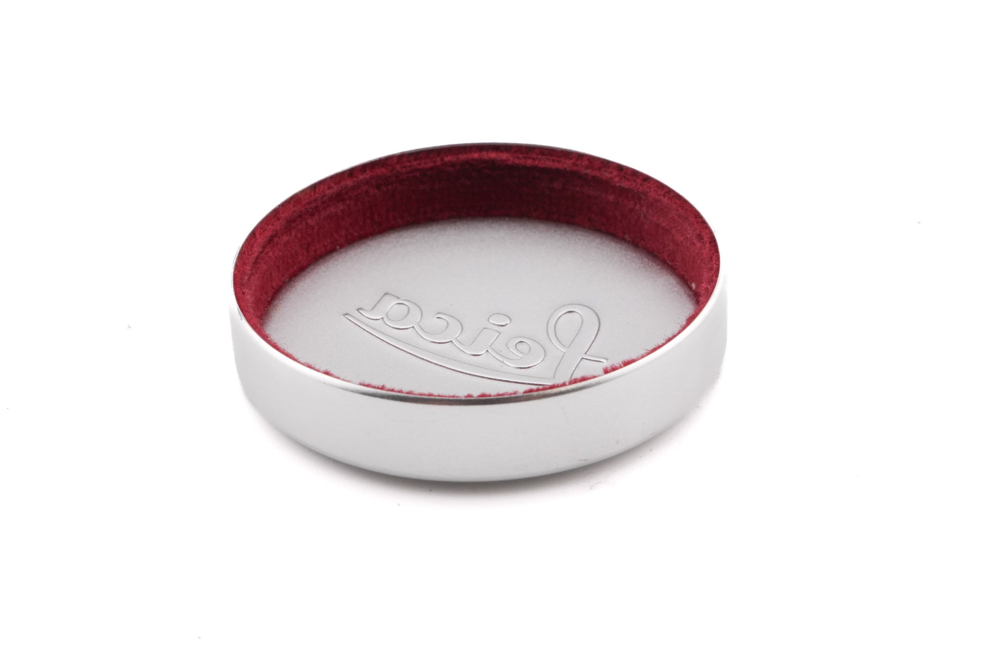 Metal lens cap for Leica lenses with 43mm threads or lenses designated E43. Red felt inside for friction.