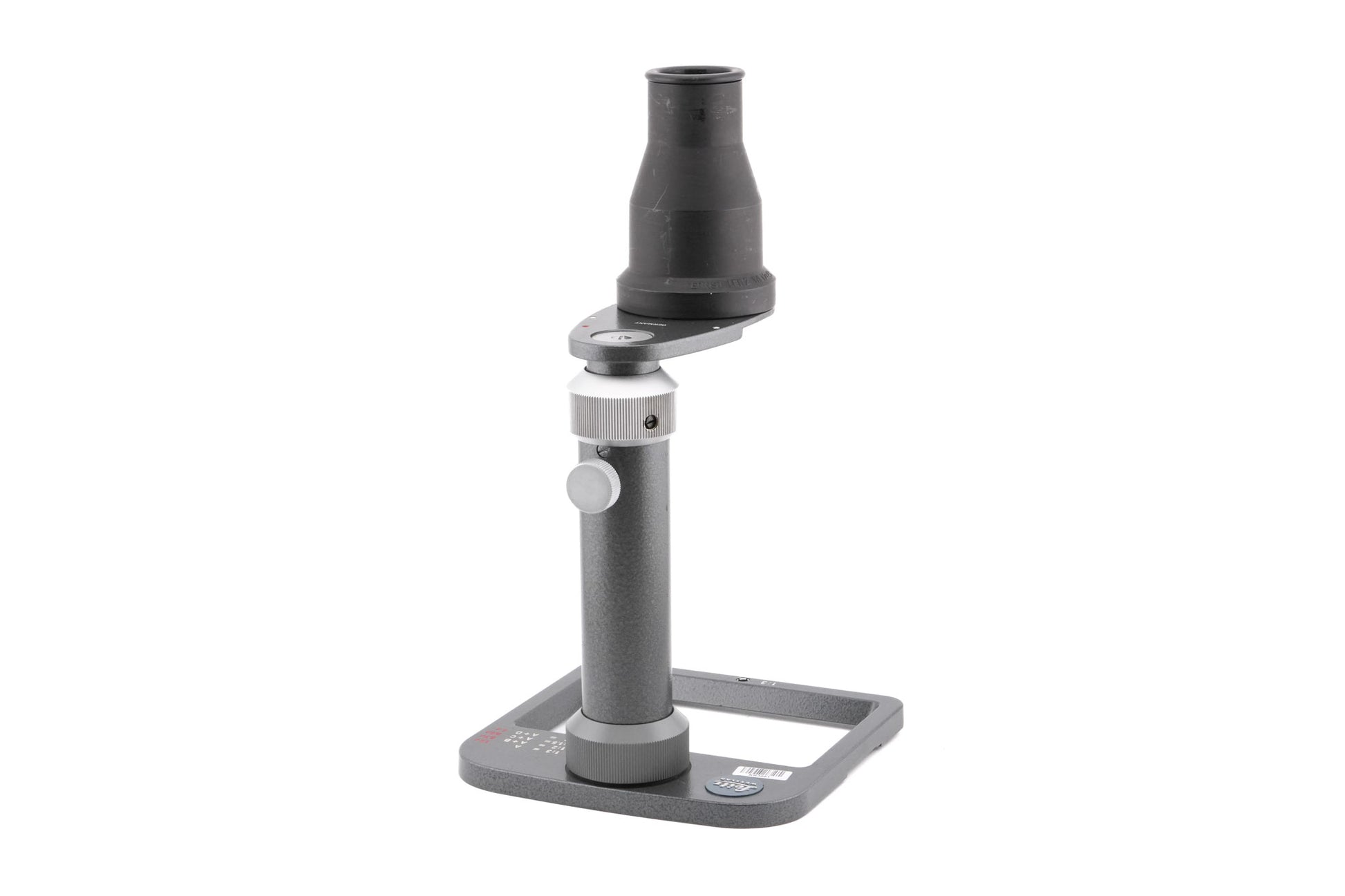 Copy Stand (BEOON / 16511) made by Leica. Small copying stand for scales of reproduction of 1:1 to 1:3. Designed for Leica M3, it can be used with Visoflex and many cameras with the equivalent of a 35 or 50mm lens. Metal body available in dark grey.