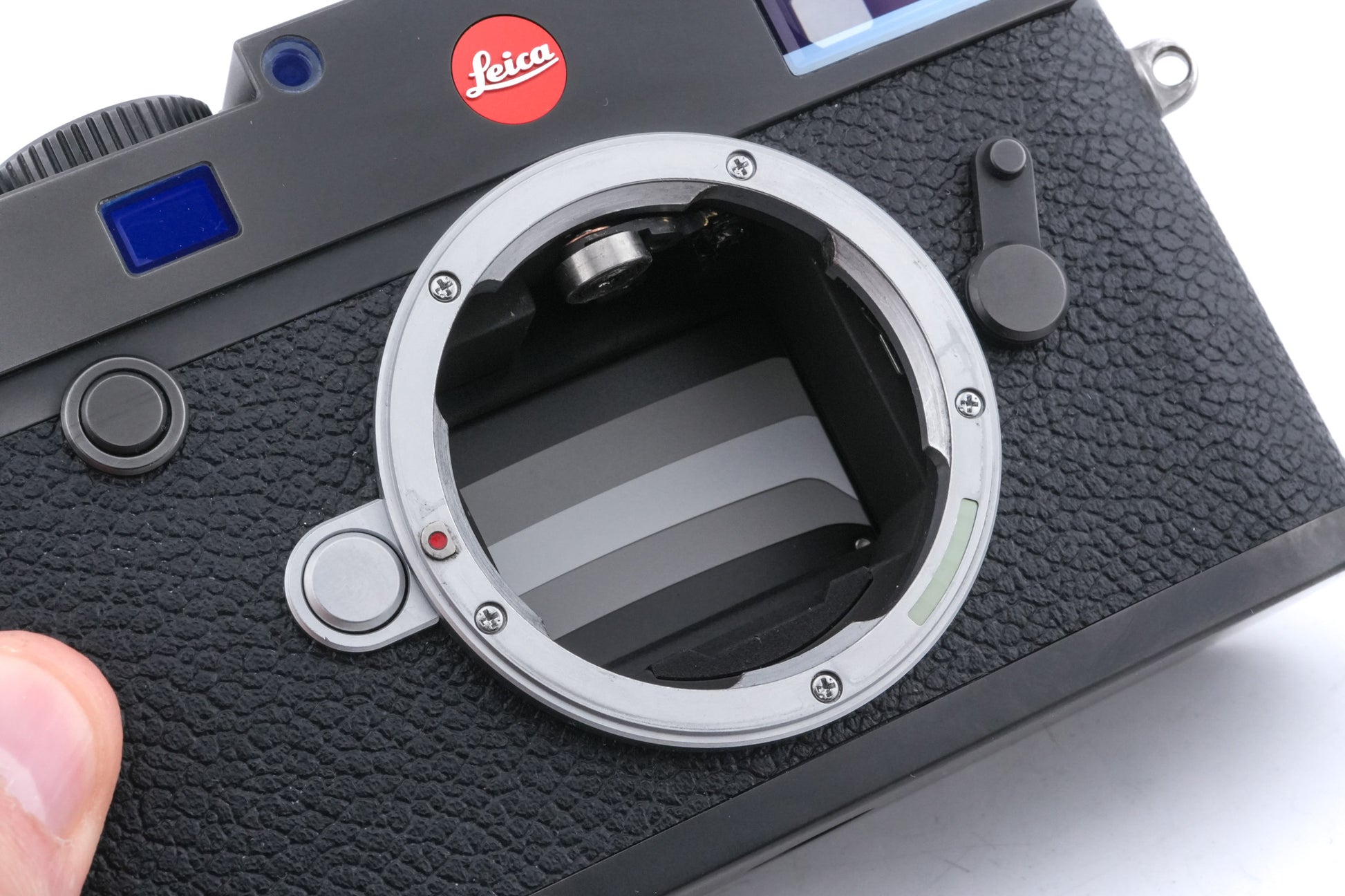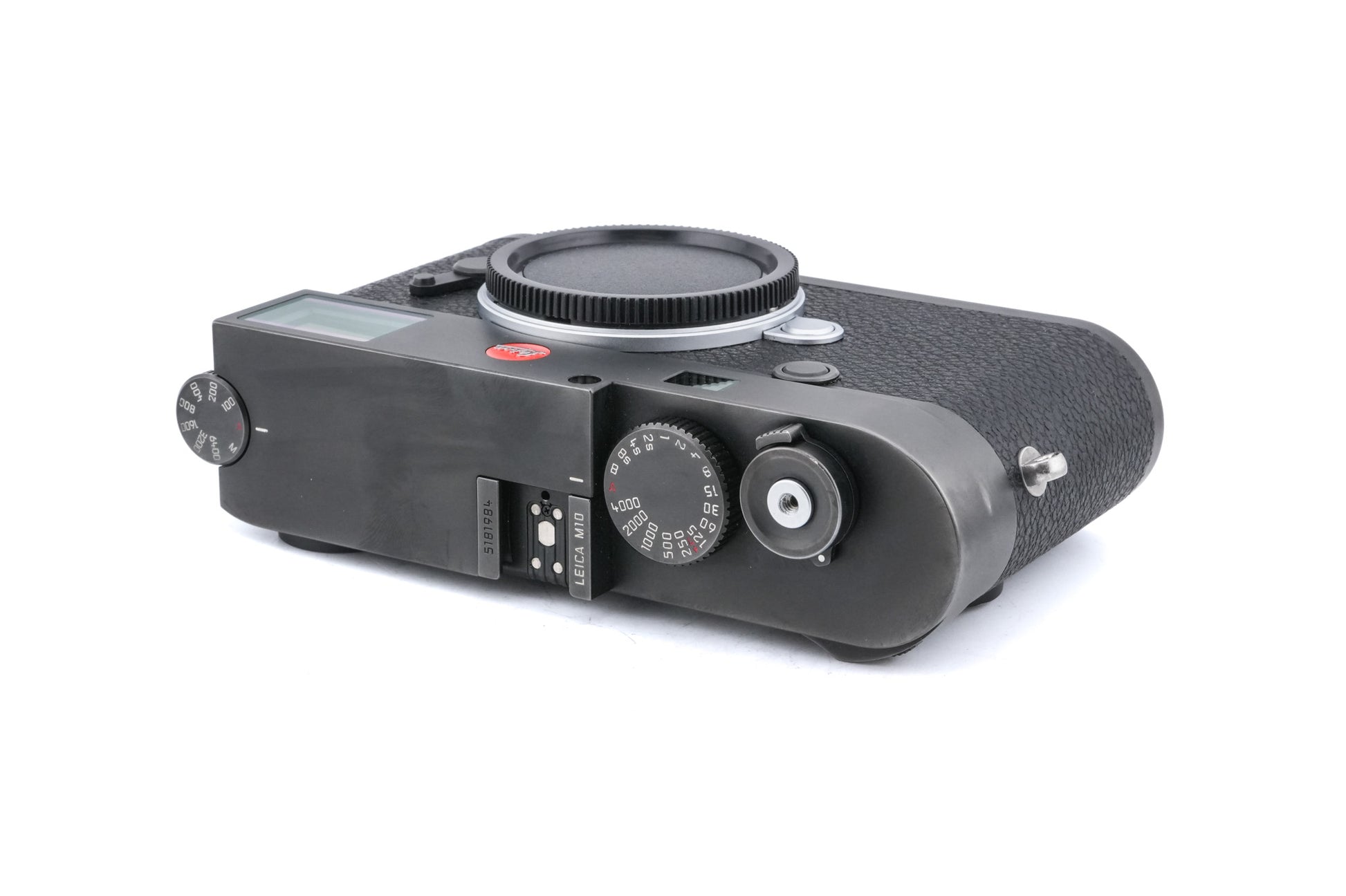 Manual focus full-frame M-mount digital rangefinder camera introduced by Leica in 2017. The M10 introduced a new CMOS sensor with improved dynamic range and a new Maestro II processor with 2GB of built-in RAM, all in a slimmed-down body as thin as the analog M4. It has a 3” rear LCD, wifi capabilities, and uses SD cards for storage. It does not have any I/O ports or video capabilities. A larger viewfinder with a magnification of 0.73x was also added. It has framelines for 35/135mm, 28/90mm, and 50/75mm. Metal body available in black (20000).