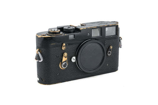 Manual focus M-mount 35mm rangefinder camera introduced by Leica in 1957. It was intended as a lower-cost alternative to the single-stroke M3. At launch, it was available without a self-timer, had an externally manually reset frame counter, a button rewind, and a 0.72x viewfinder with frame lines for 35mm, 50mm, and 90mm lenses. It became very popular due to its wide magnification finder and was known as the "wide-angle" Leica. The M2 experienced many changes over the production period and was given multiple designations to differentiate the models. The deciding factor for the designations was the presence, or lack of, a self-timer. This is the second version of the camera introduced in 1958, and was manufactured with a self-timer. This model has become known in catalogues as the M2S. Another significant change happened in 1958, when the button rewind was changed to a lever akin to the M3. This version with a self-timer was, however, only manufactured with the lever rewind. Metal body available in black paint (KOOHW / 10308).