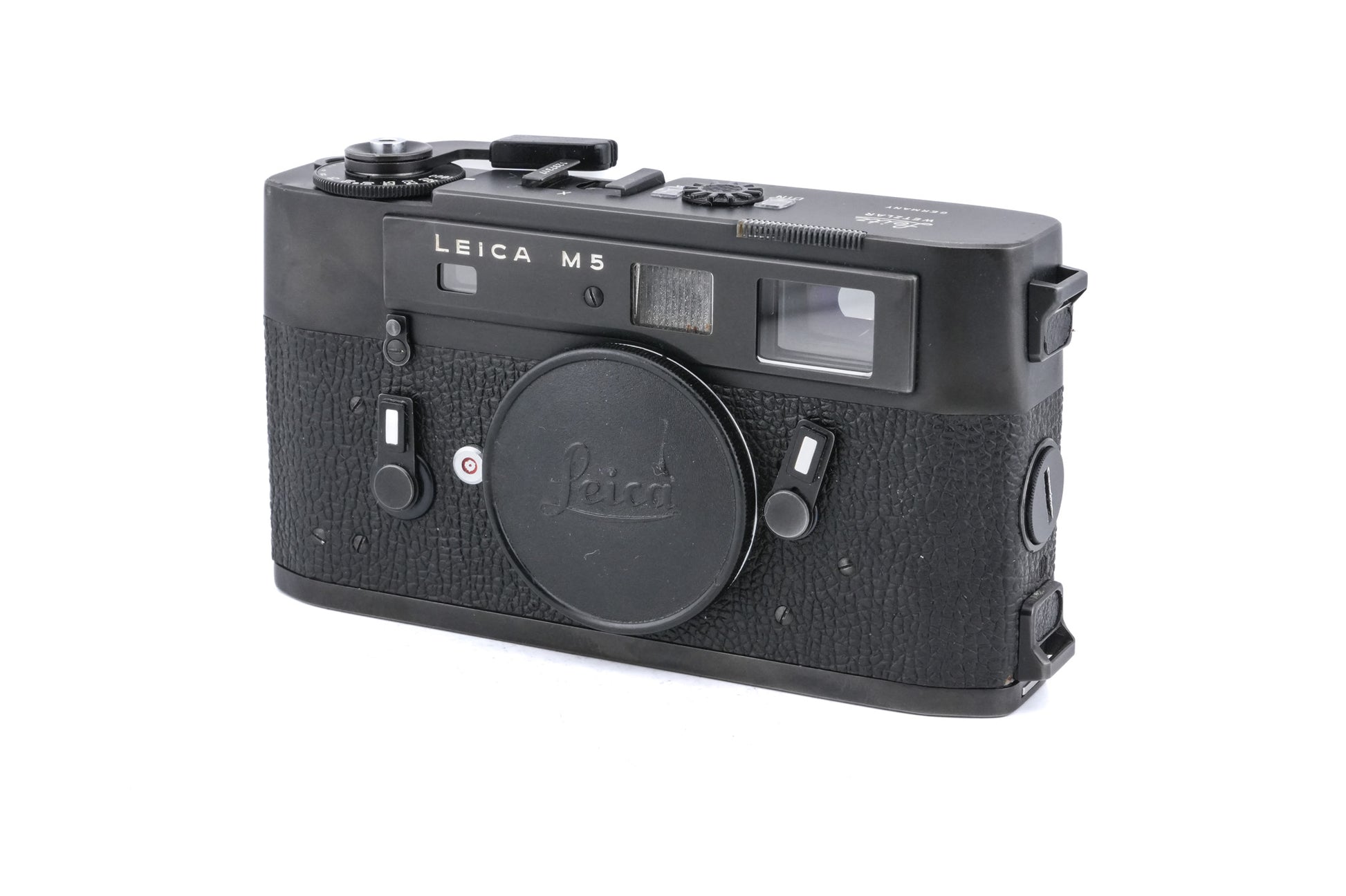 Manual focus M-mount 35mm rangefinder camera introduced by Leica in 1971. It was the first Leica rangefinder to feature built-in electronics and TTL metering and was the last Leica rangefinder built by hand in Wetzlar, Germany. It has a 0.72x magnification viewfinder with a 49.32mm baselength, which is longer than other Leica M models. The M5 featured many new design choices that set it apart from the earlier M cameras and has henceforth been subject to many love-hate responses from M camera enthusiasts. Metal body available in black (10502).