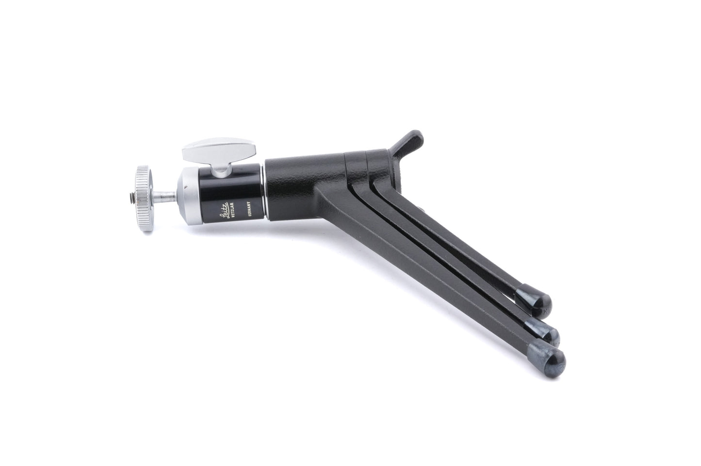 Mini tripod with rotating legs made by Leica. This is only the legs, since ball heads are interchangeable. Multiple variations over the years were made, first produced in 1949. Metal body available in black.