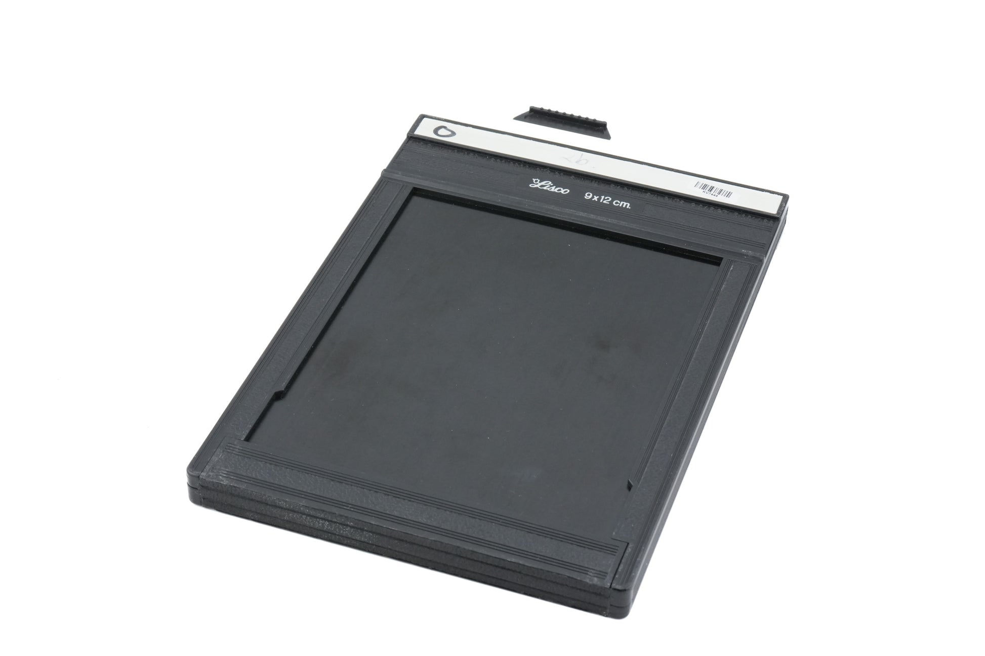 9x12 cm sheet film holder made by Lisco. Each holder can hold two sheets of film, one on each side. Plastic body available in black.