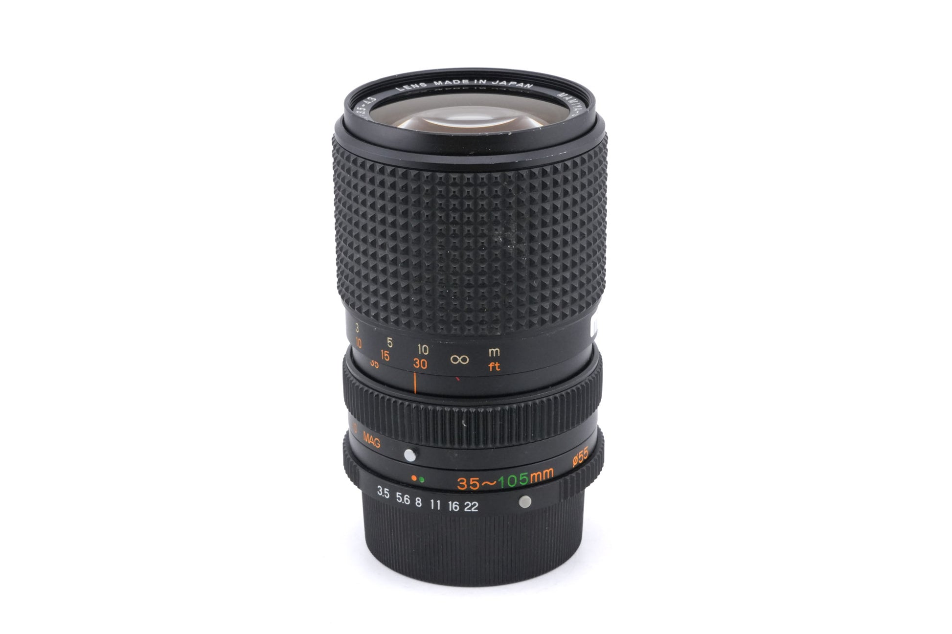 Manual focus normal zoom for Mamiya Z mount 35mm SLRs. Push-pull zoom with dedicated macro ring giving 1:4 reproduction.