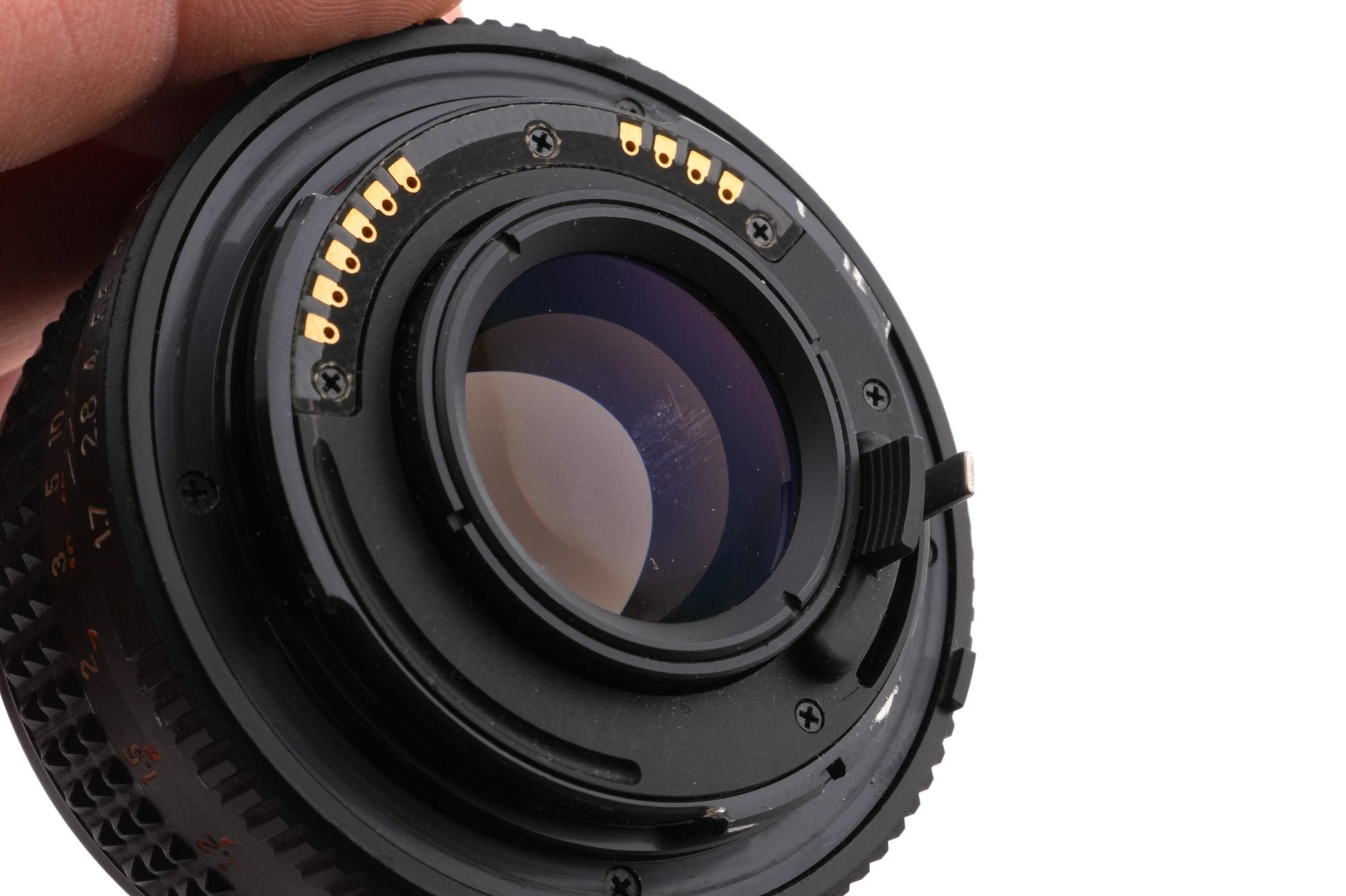 Manual focus normal lens made for Mamiya Z-mount 35mm SLR camera introduced by Mamiya. Metal and plastic body available in black.
