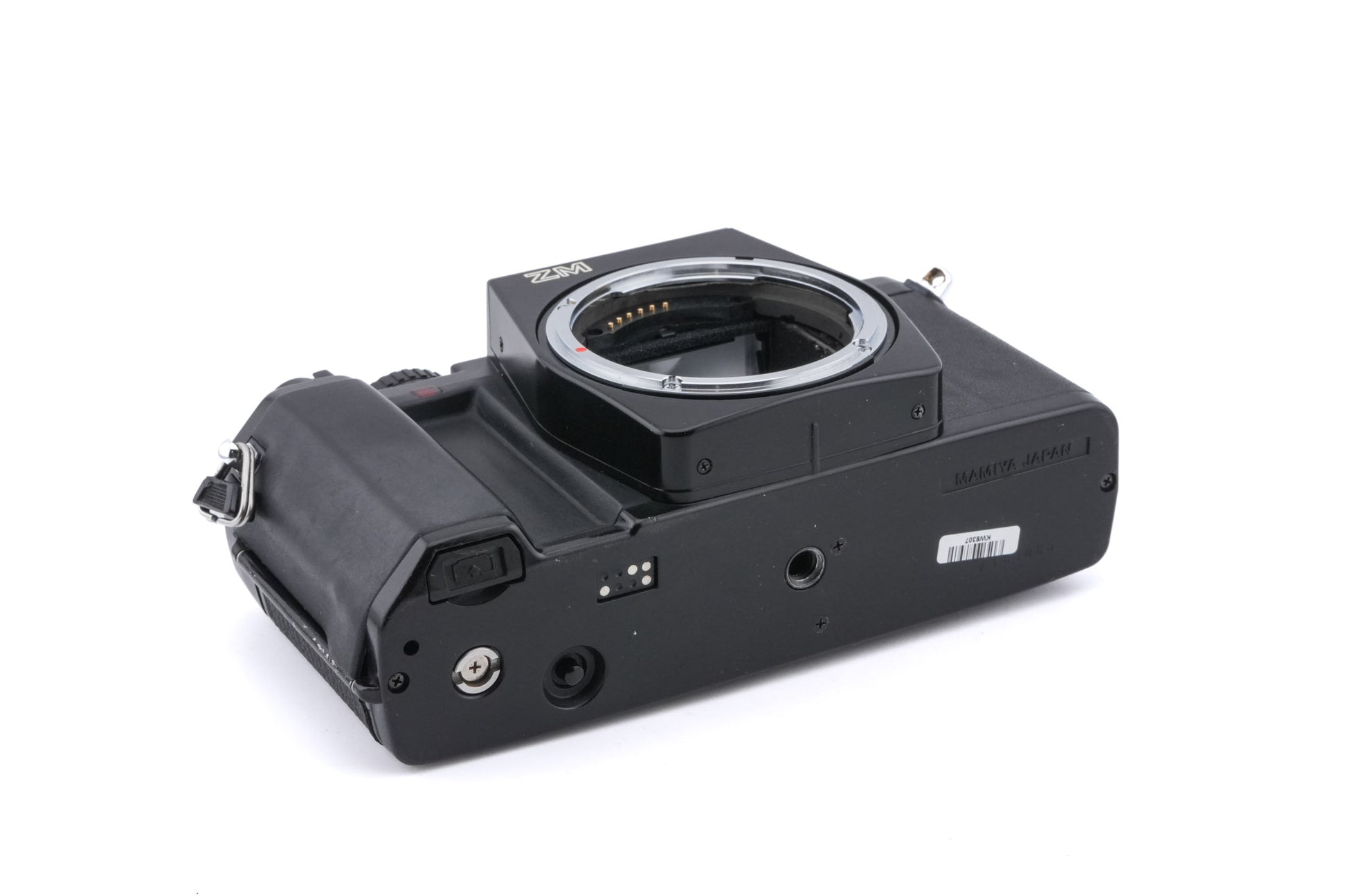 Manual focus Mamiya Z-mount 35mm SLR camera introduced by Mamiya. It has an electronically controlled shutter and aperture priority auto-exposure with manual mode. Plastic body available in black.