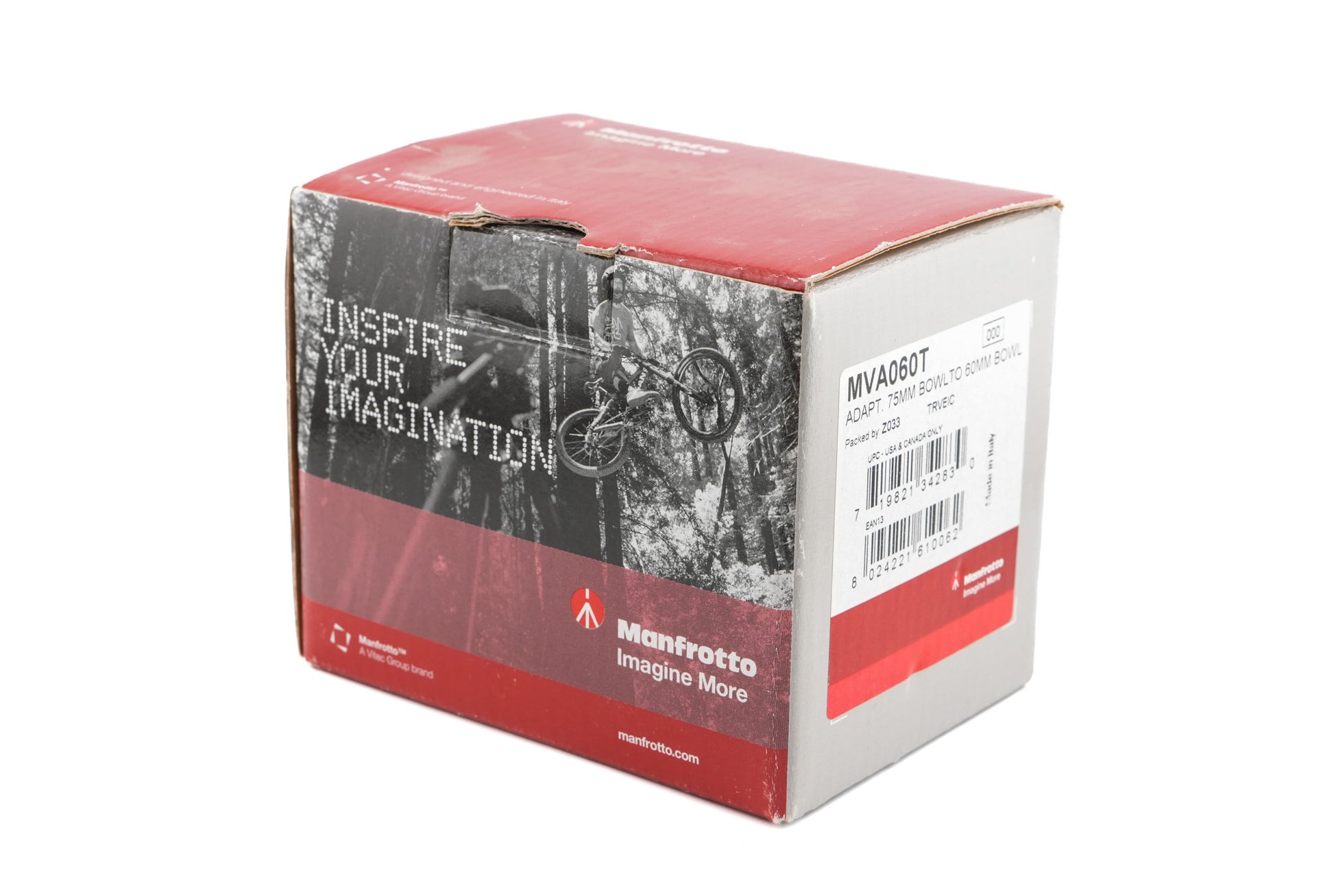 75mm to 60mm bowl adapter for MVT502AM made by Manfrotto. Plastic construction available in black.