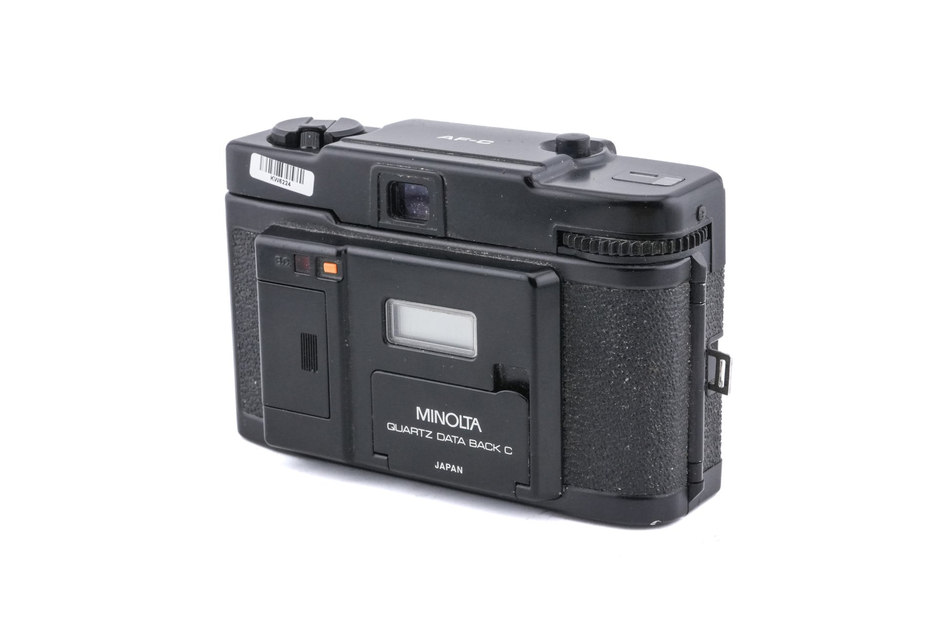 Autofocus 35mm point-and-shoot camera released by Minolta in 1983. It has a manual film advance and rewind with a vertically sliding lens cover and manual ISO control, which allows for basic exposure compensation. It's often found with the detachable EF-C flash. Plastic body available in black, and silver.