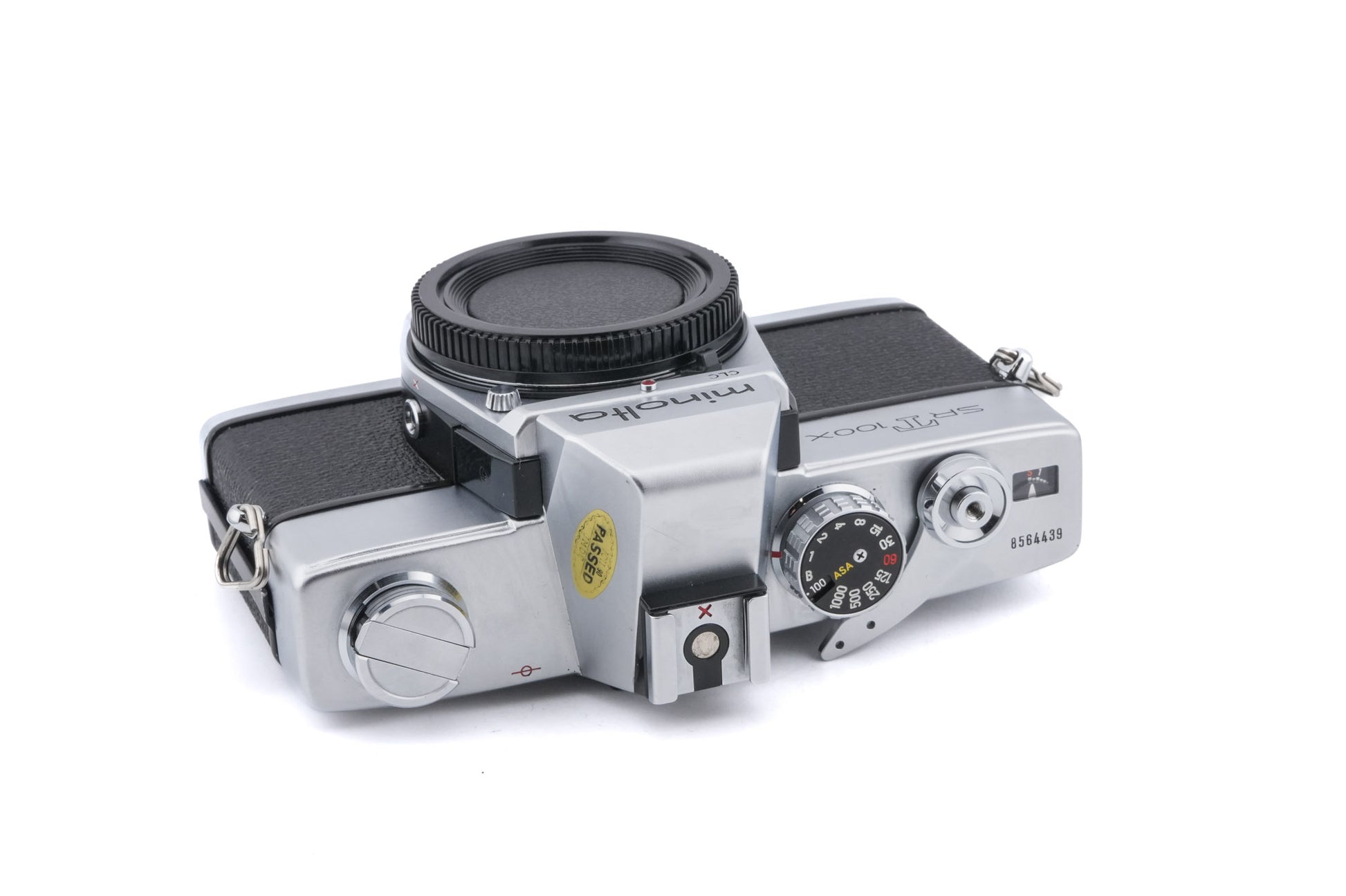 Manual focus MD/SR mount 35mm SLR camera released by Minolta in 1977. The SR-T100X was the last model from the SR-T series. It has a TTL meter. It was derived from the Minolta SR-T 100 but with an added hot shoe and 1/1000s shutter speed. This light meter is designed to use a 1.3v mercury battery. Metal body available in silver.