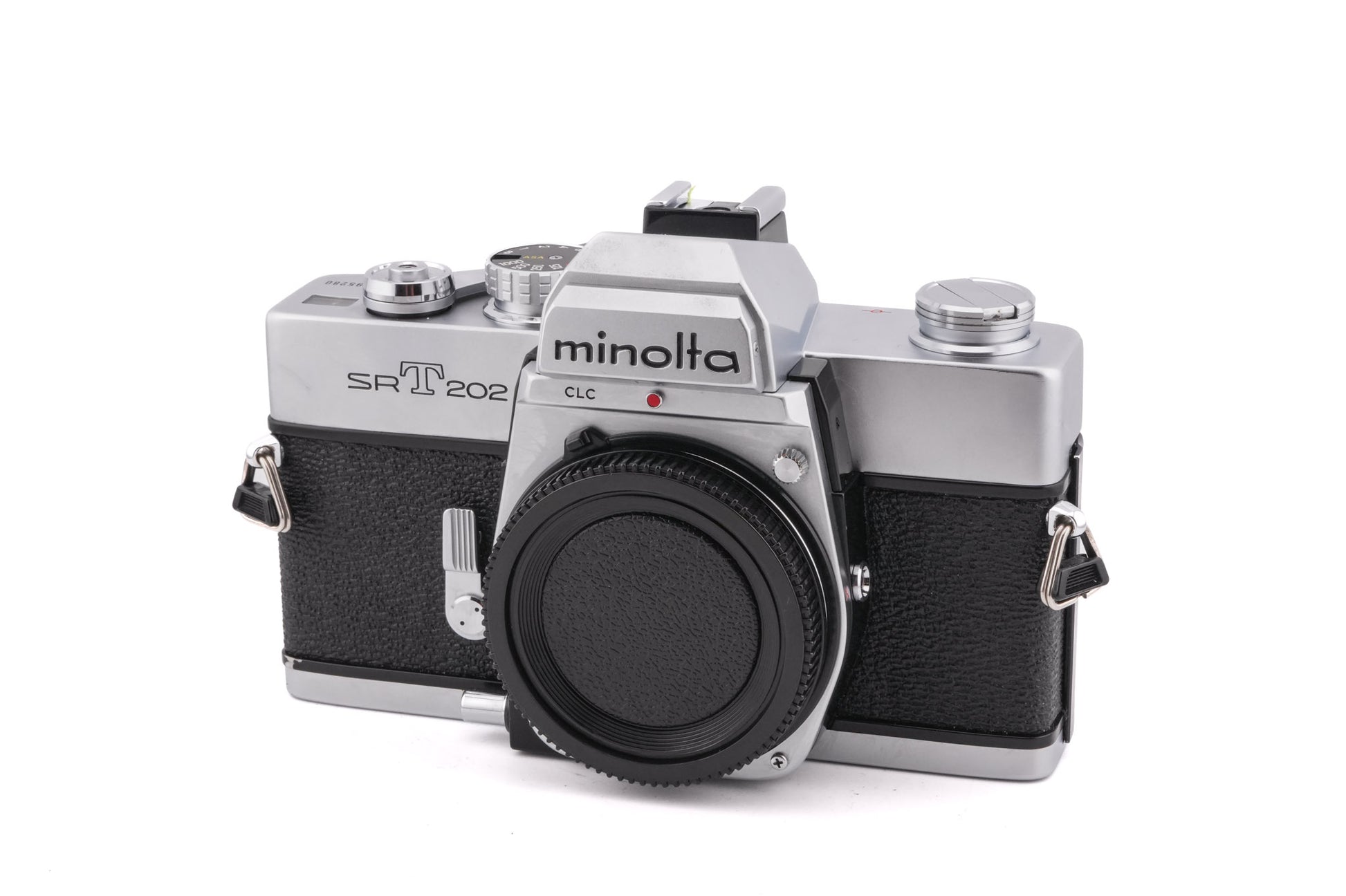 Manual focus MD-mount 35mm SLR camera introduced by Minolta in March of 1975. This is the American version of the otherwise same camera known as the SR-T 303b in Europe and SR 505 in Japan. Metal body available in silver.