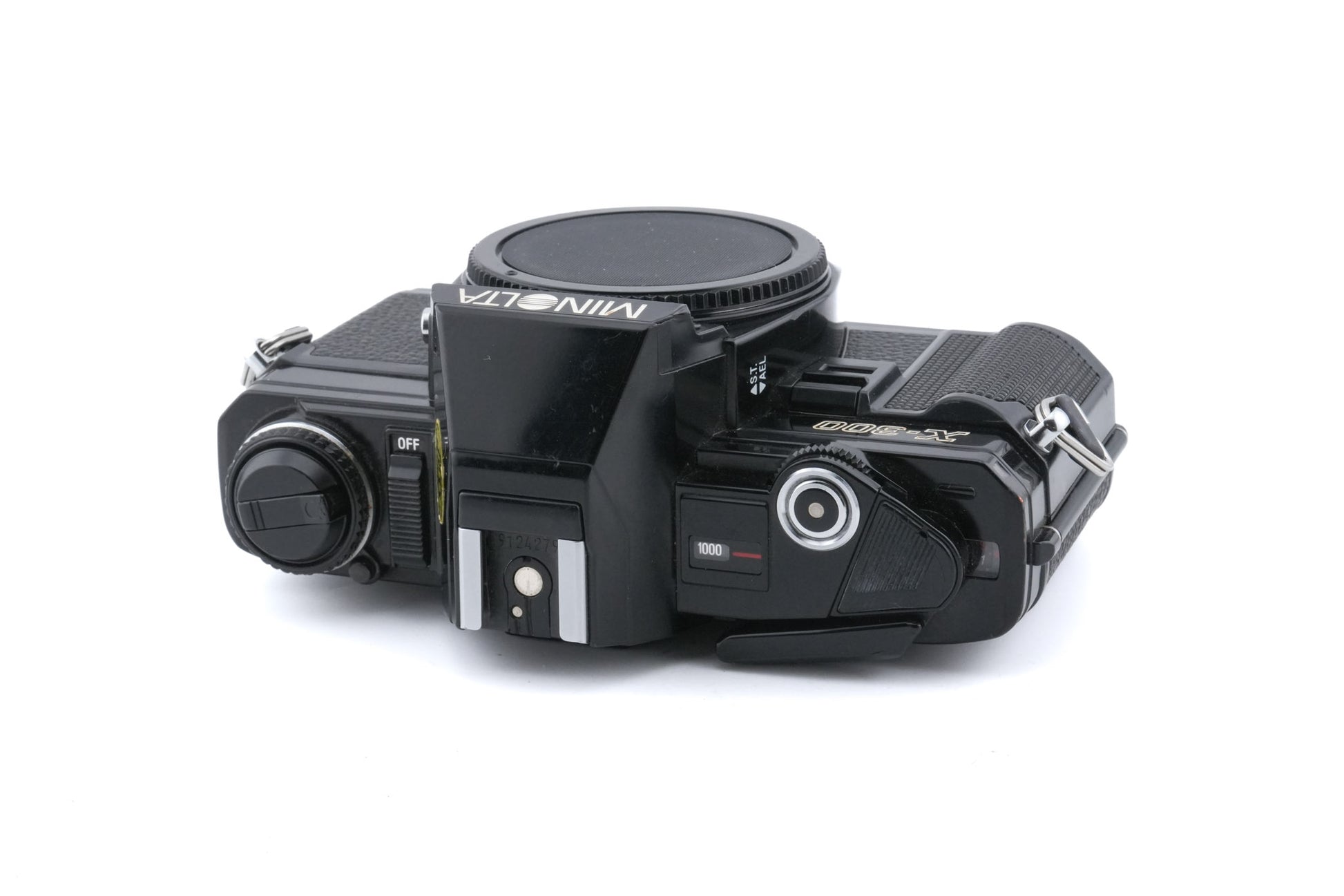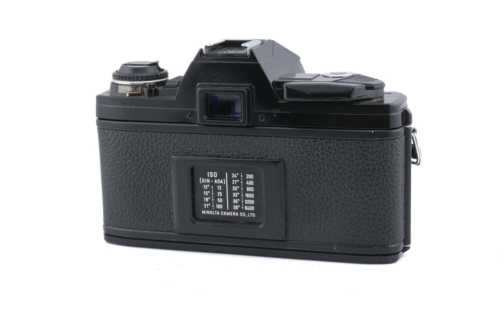 Manual focus MD/SR mount 35mm SLR camera released by Minolta. It has aperture priority auto-exposure as well as fully manual exposure. Metal body available in black & silver.