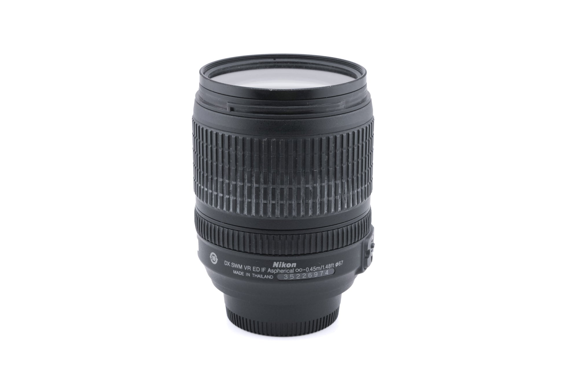 Autofocus telephoto zoom lens made for DX-mount digital SLR cameras by Nikon. It is designed for APS-C-sized sensors and gives the equivalent field of view to a 27-158 mm lens on full frame/35mm. It has image stabilization (VR). Plastic body available in black.